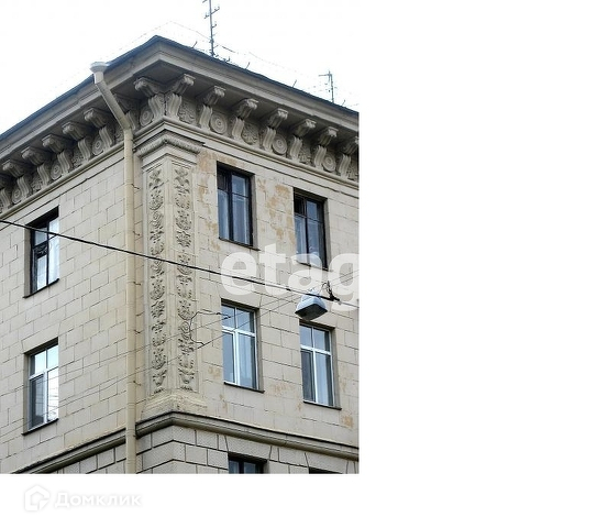Кирпичный исторический дом 1895 года постройки. Здание с историческим прошлым: поздне-сталинский ампир с монументальным фасадом и внешним лифтом.