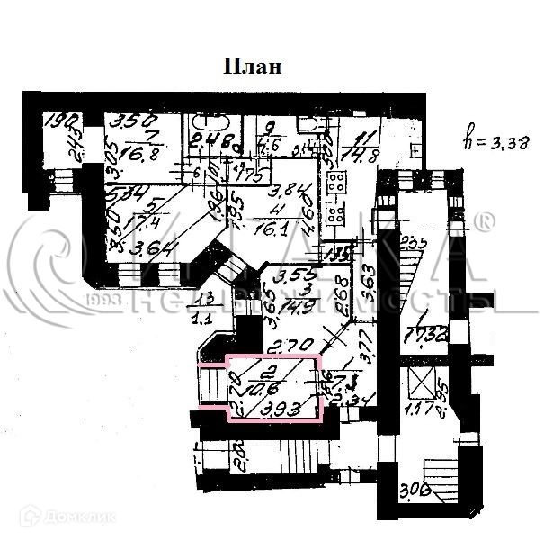 Высота потолков 3.4 м