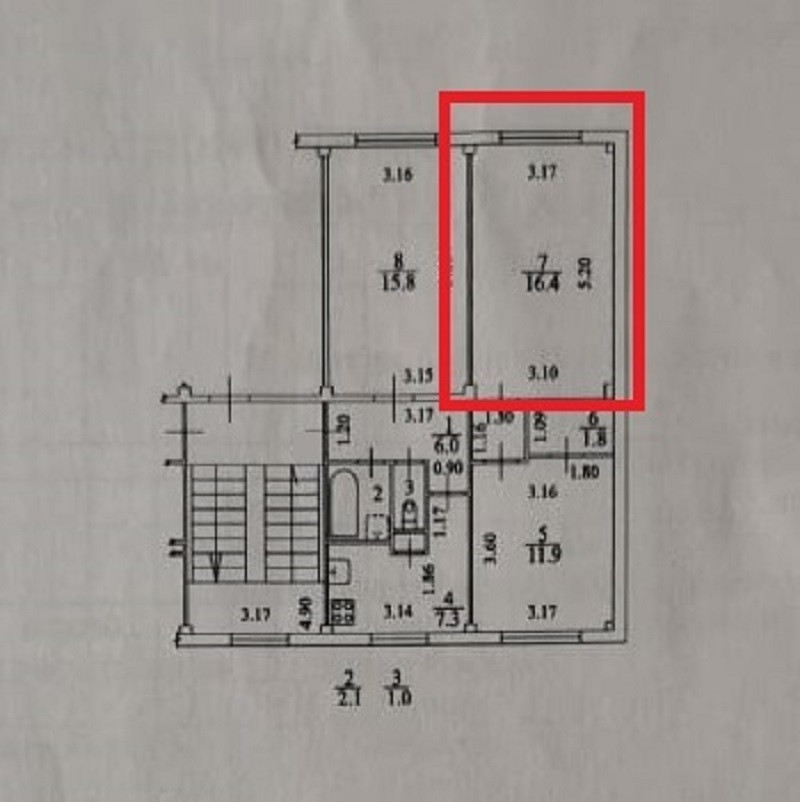 Жилая площадь 16.4 м2