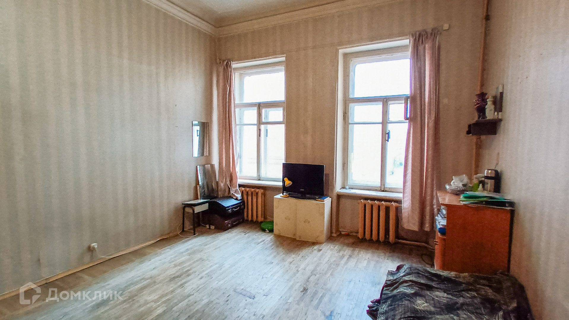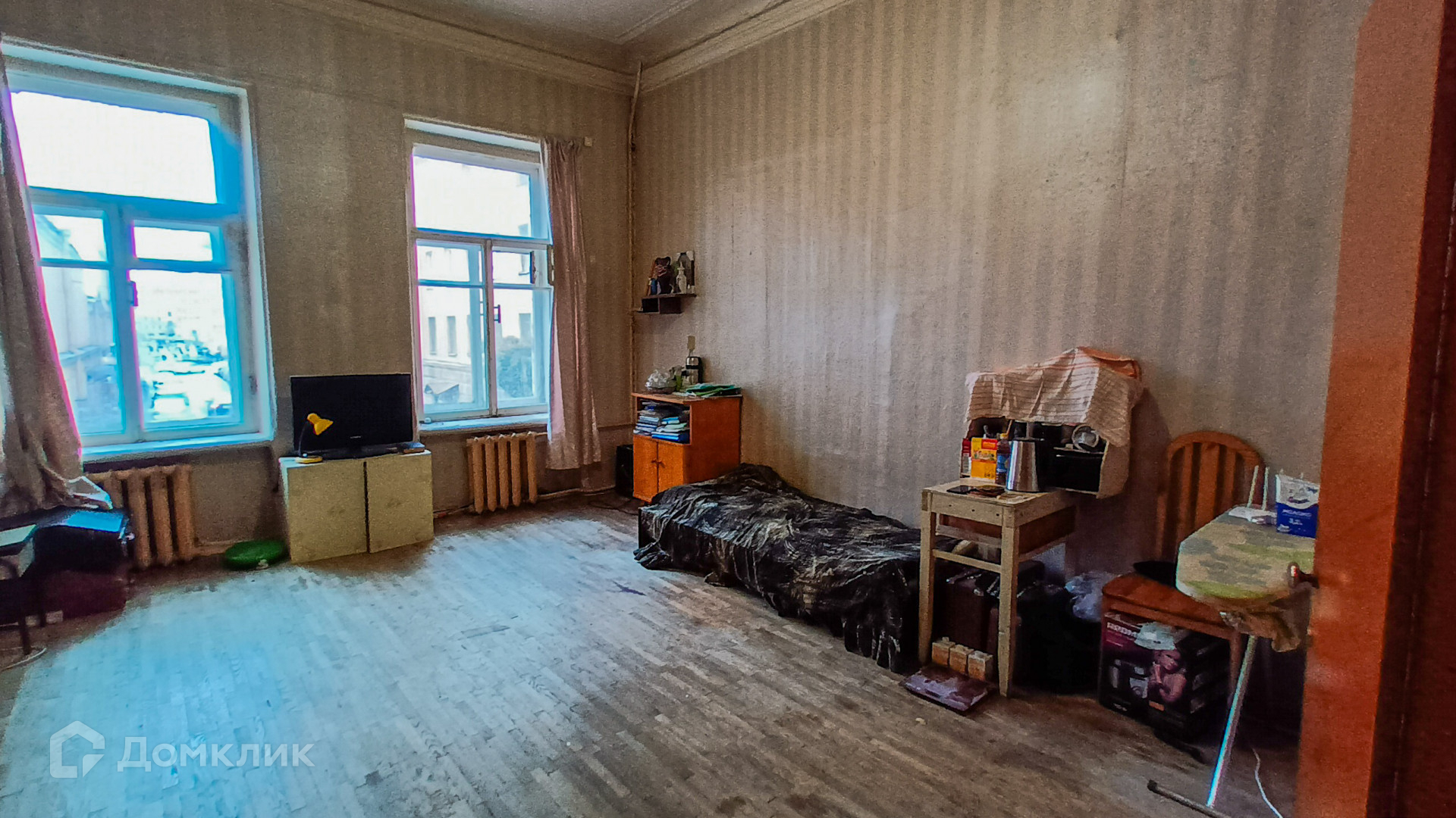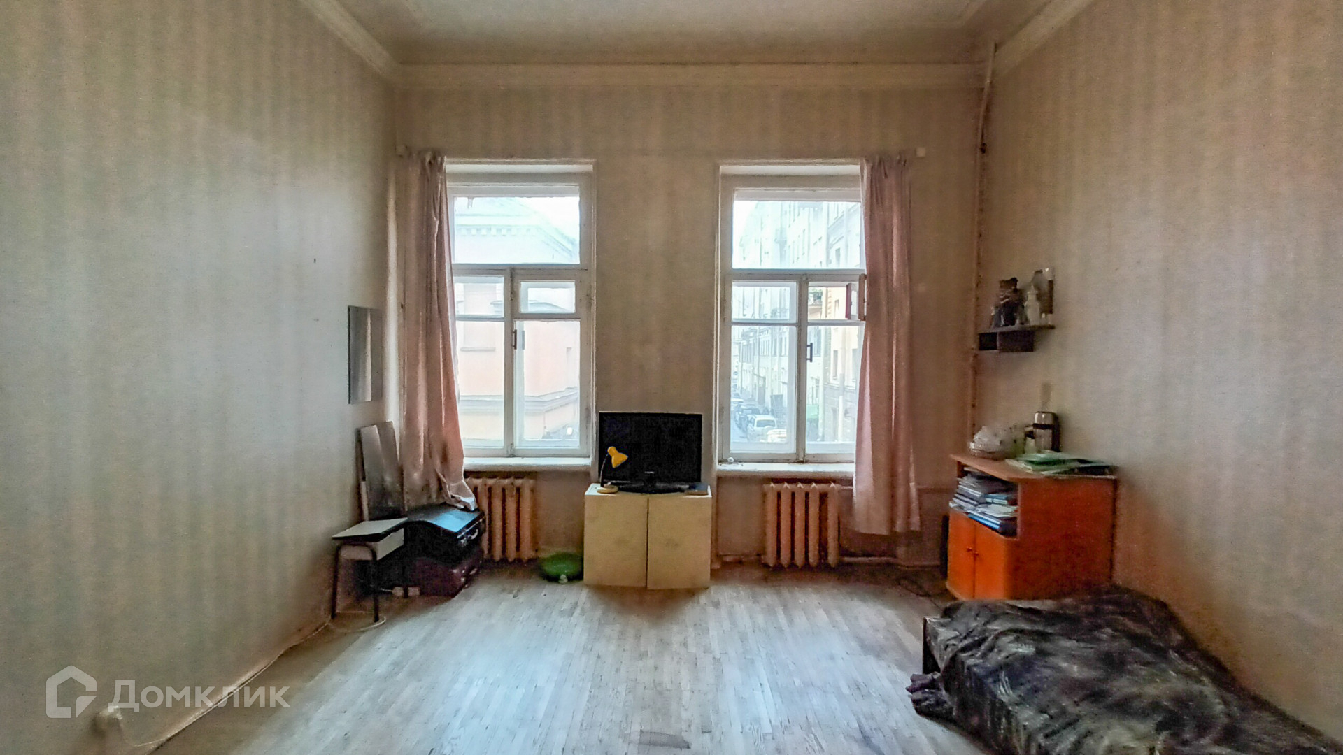 Комната 22 м2 в 5-ти комнатной коммунальной квартире, общая площадью 114 м2, в доме 1798 года постройки. Комната квадратной формы с двумя большими окнами,  высокий потолок 3,50 м.
