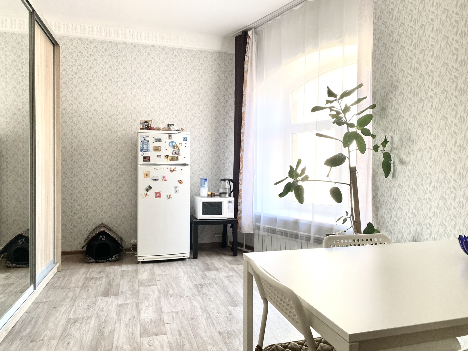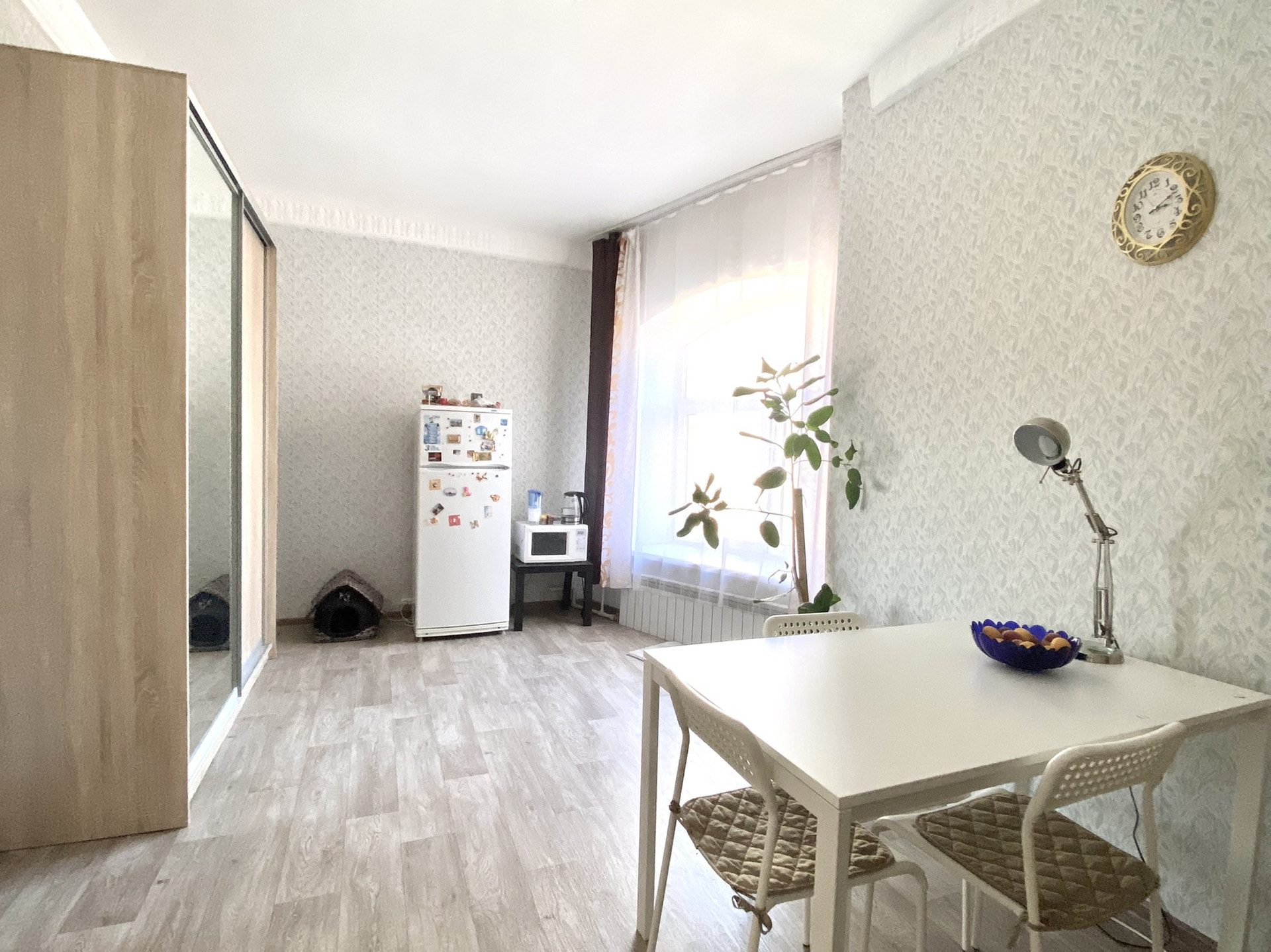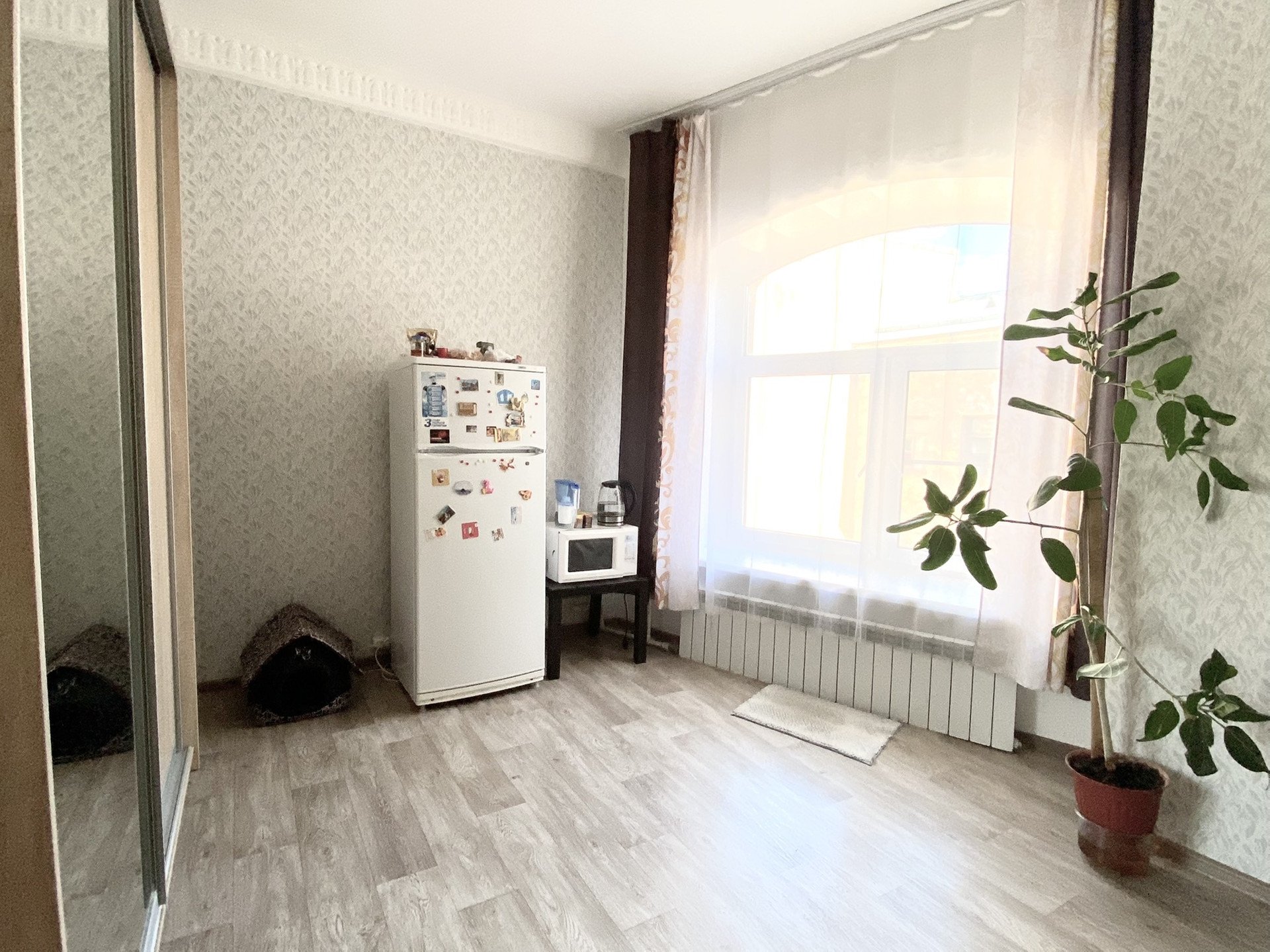 Комната находится в отдельной части квартиры (смотрите план). В данной части квартиры есть общее окно и множество мест для хранения. Кухня и санузел находятся в этой же части квартиры, что создаёт определённый комфорт от проживания и выполнения бытовых задач. В перспективе из данной комнаты можно сделать студию, ведь все коммуникации в непосредственной близости за стеной.