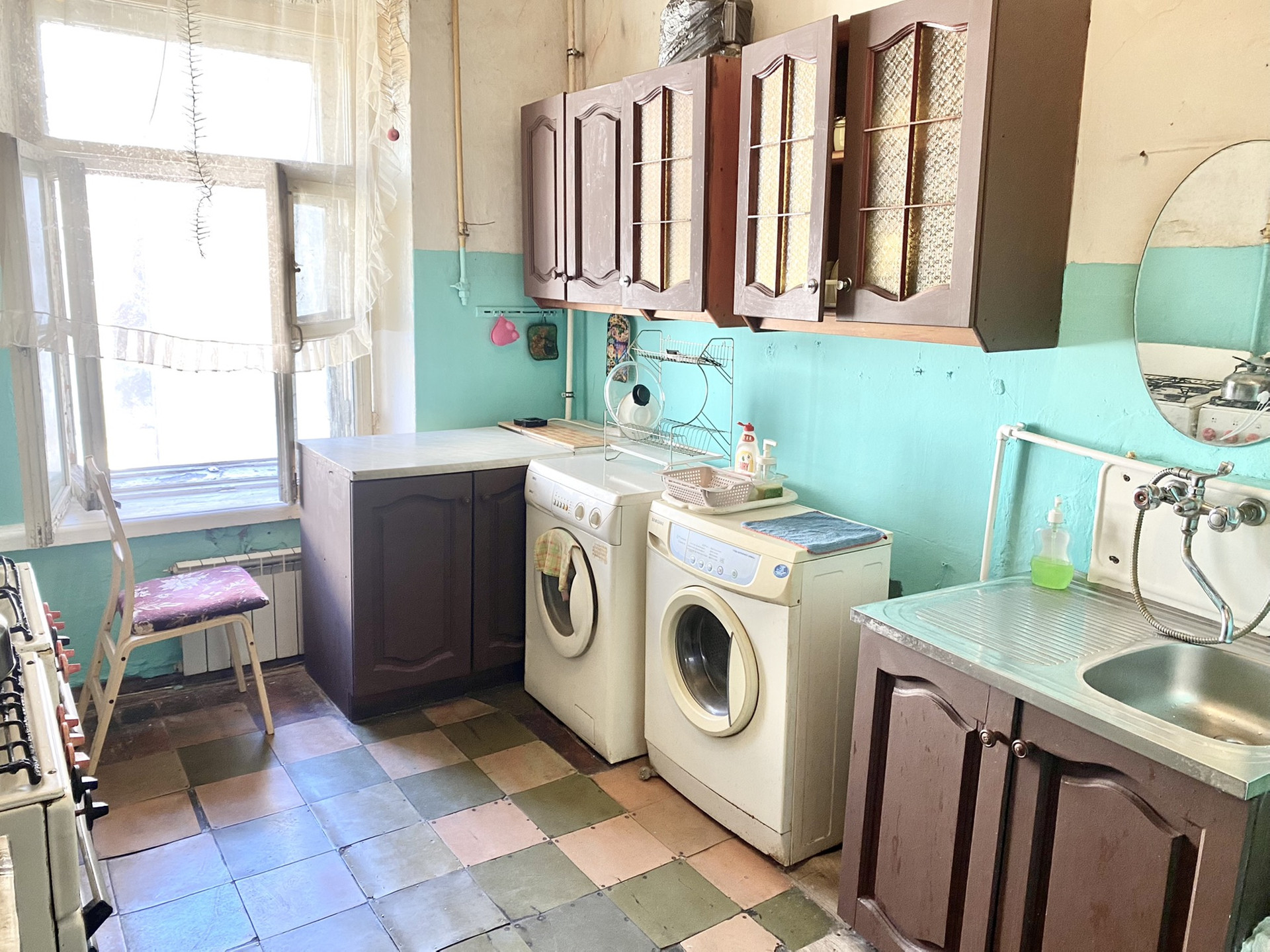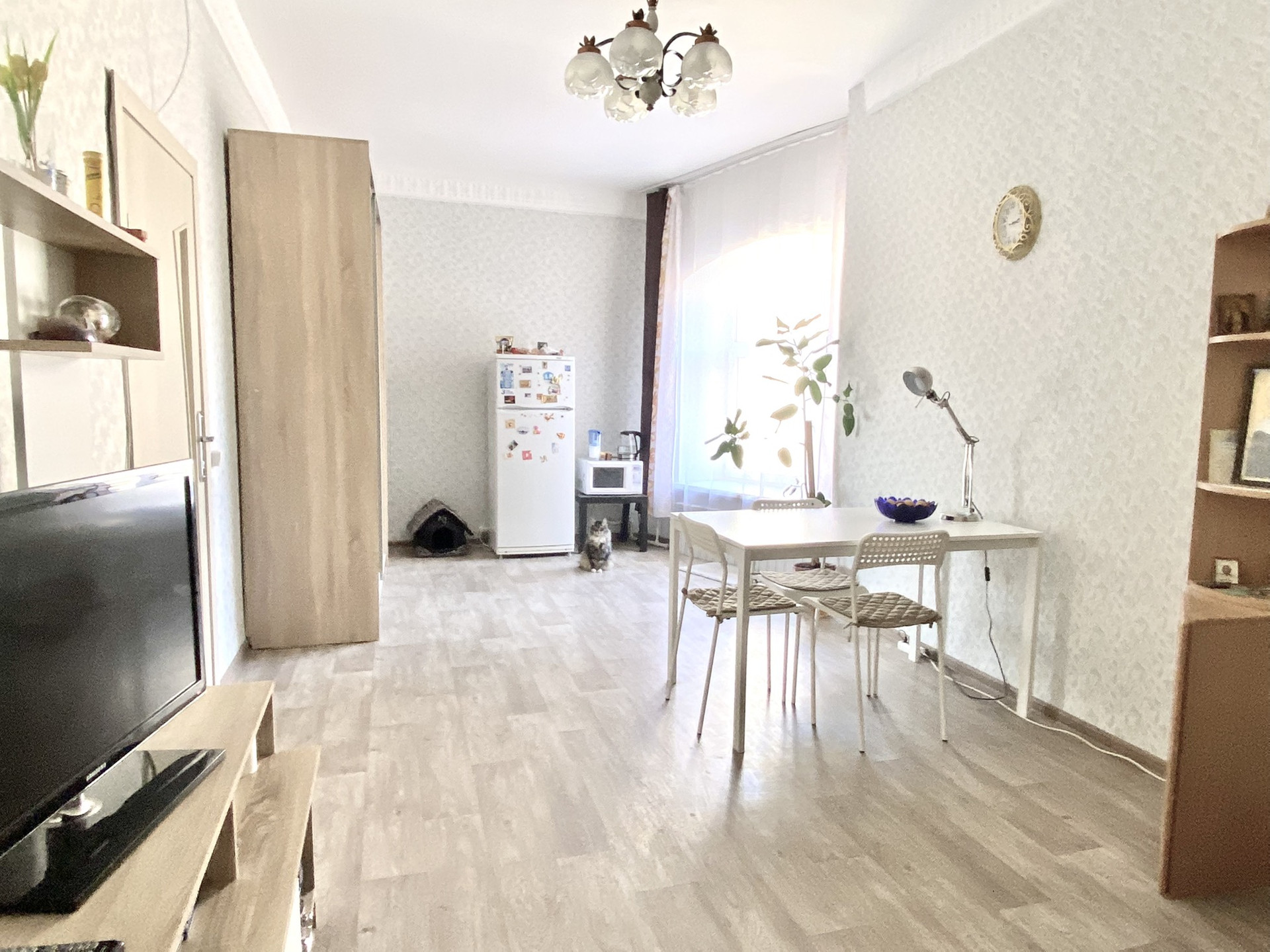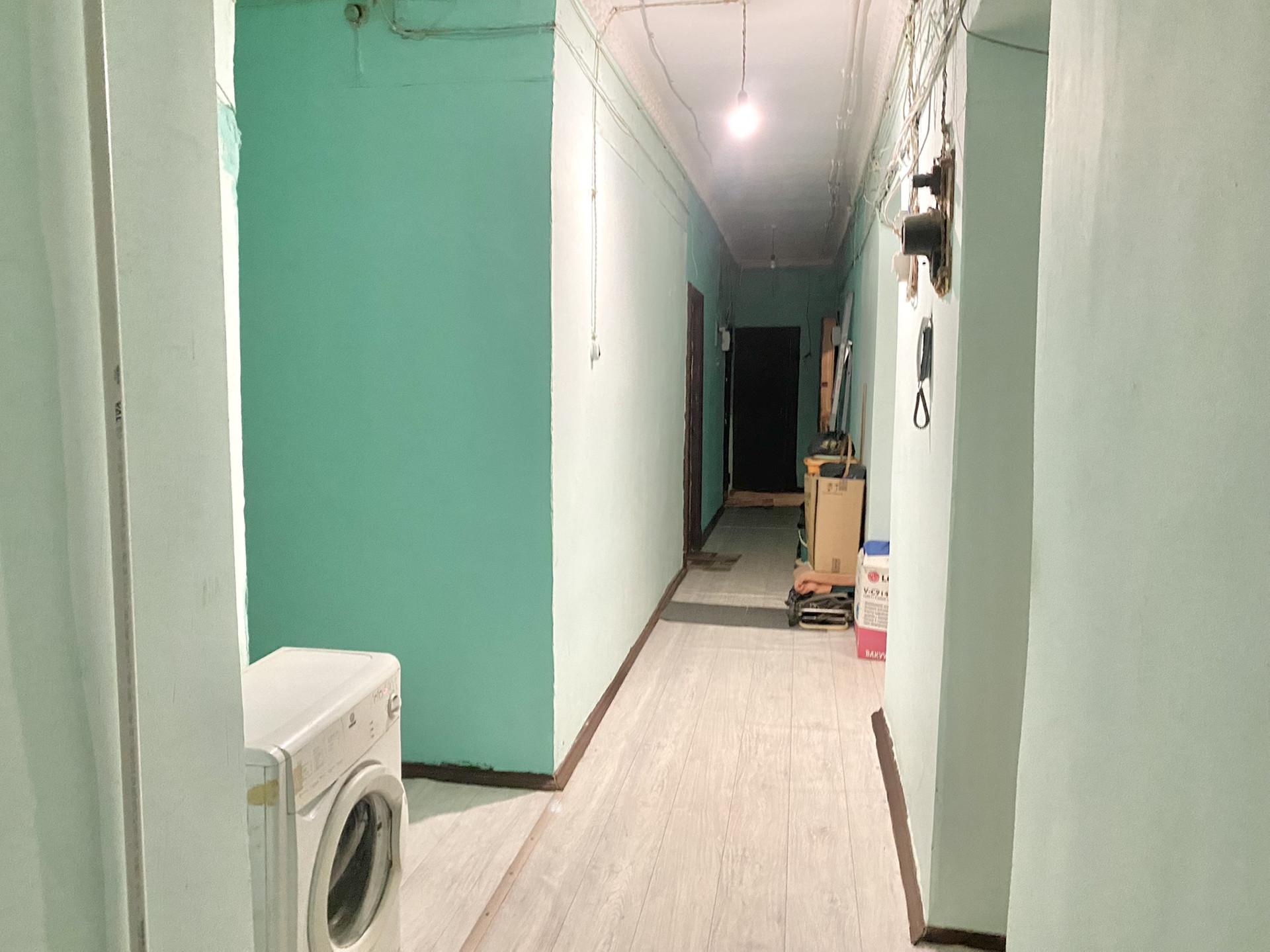Комната находится в отдельной части квартиры (смотрите план). В данной части квартиры есть общее окно и множество мест для хранения. Кухня и санузел находятся в этой же части квартиры, что создаёт определённый комфорт от проживания и выполнения бытовых задач. В перспективе из данной комнаты можно сделать студию, ведь все коммуникации в непосредственной близости за стеной.