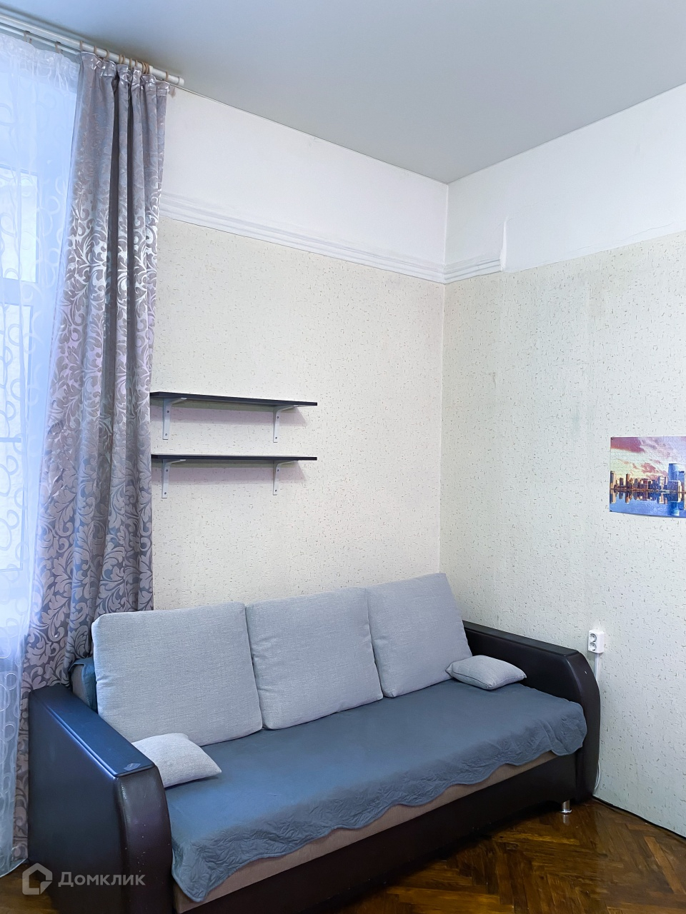 Окно комнаты выходит на тихий двор-колодец, широкий подоконник дает возможность организовать рабочее место. Санузел раздельный, очереди отсутствуют.