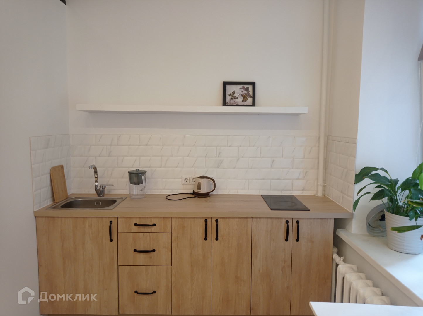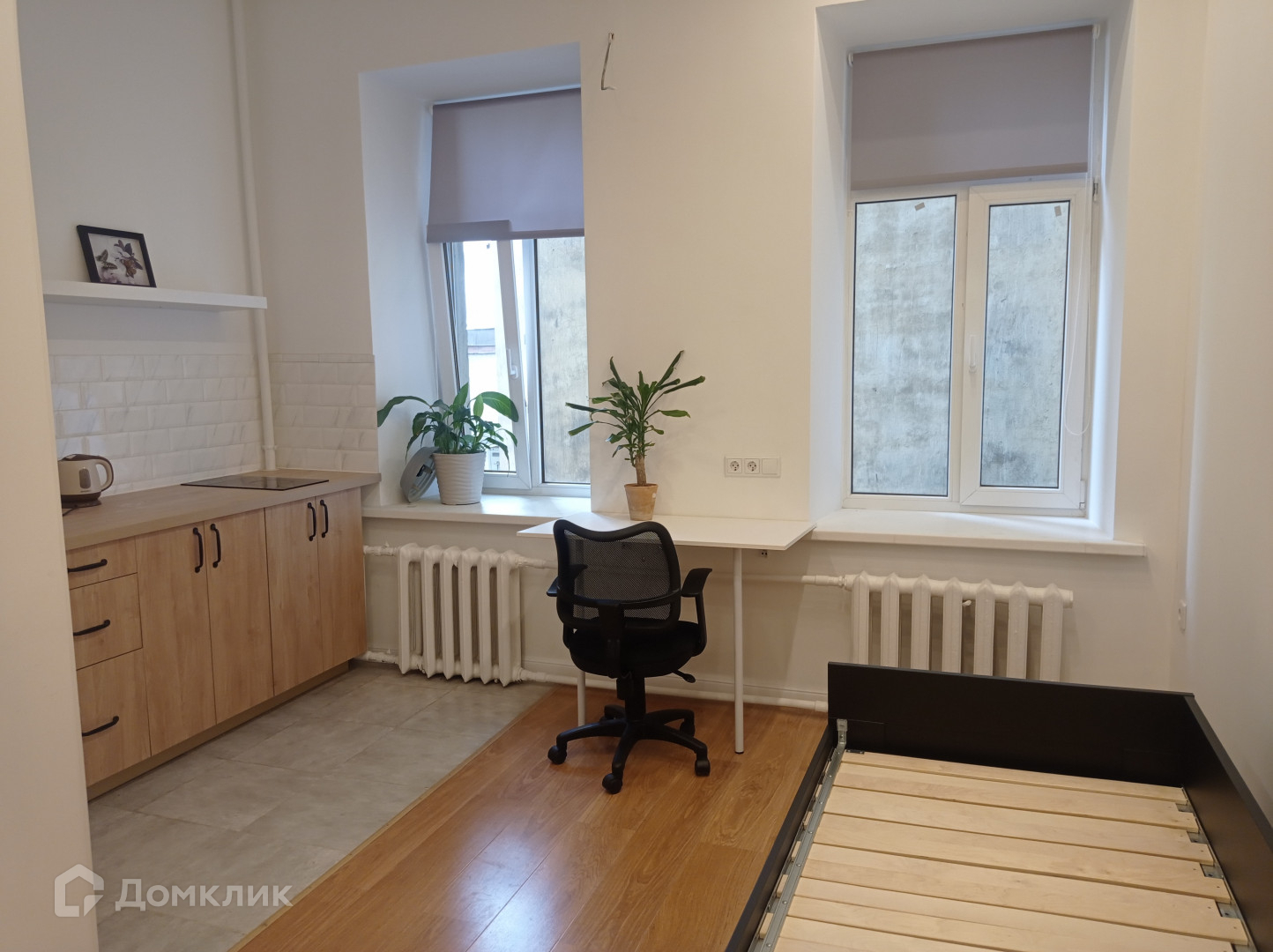 По документам это комната в коммунальной квартире, но по факту - обособленная уютная студия с очень хорошим ремонтом, со своей мини-кухней (раковина, варочная панель) и отдельным просторным санузлом. Пол – дубовый паркет, потолок со встроенными светильниками, два окна (стеклопакеты) выходят во дворик.