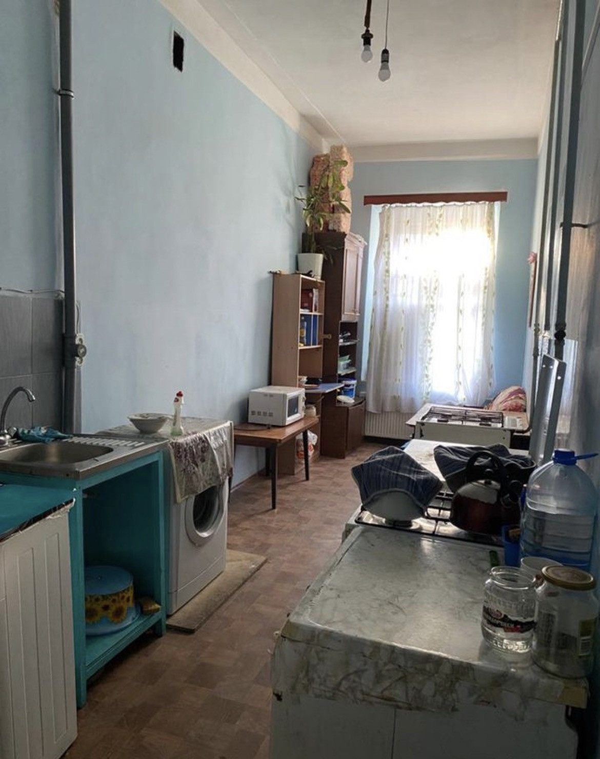 В квартире большая кухня – 16,6 кв.м, плиты газовые, 2 туалета, ванная комната, 2 комнаты-кладовки.
