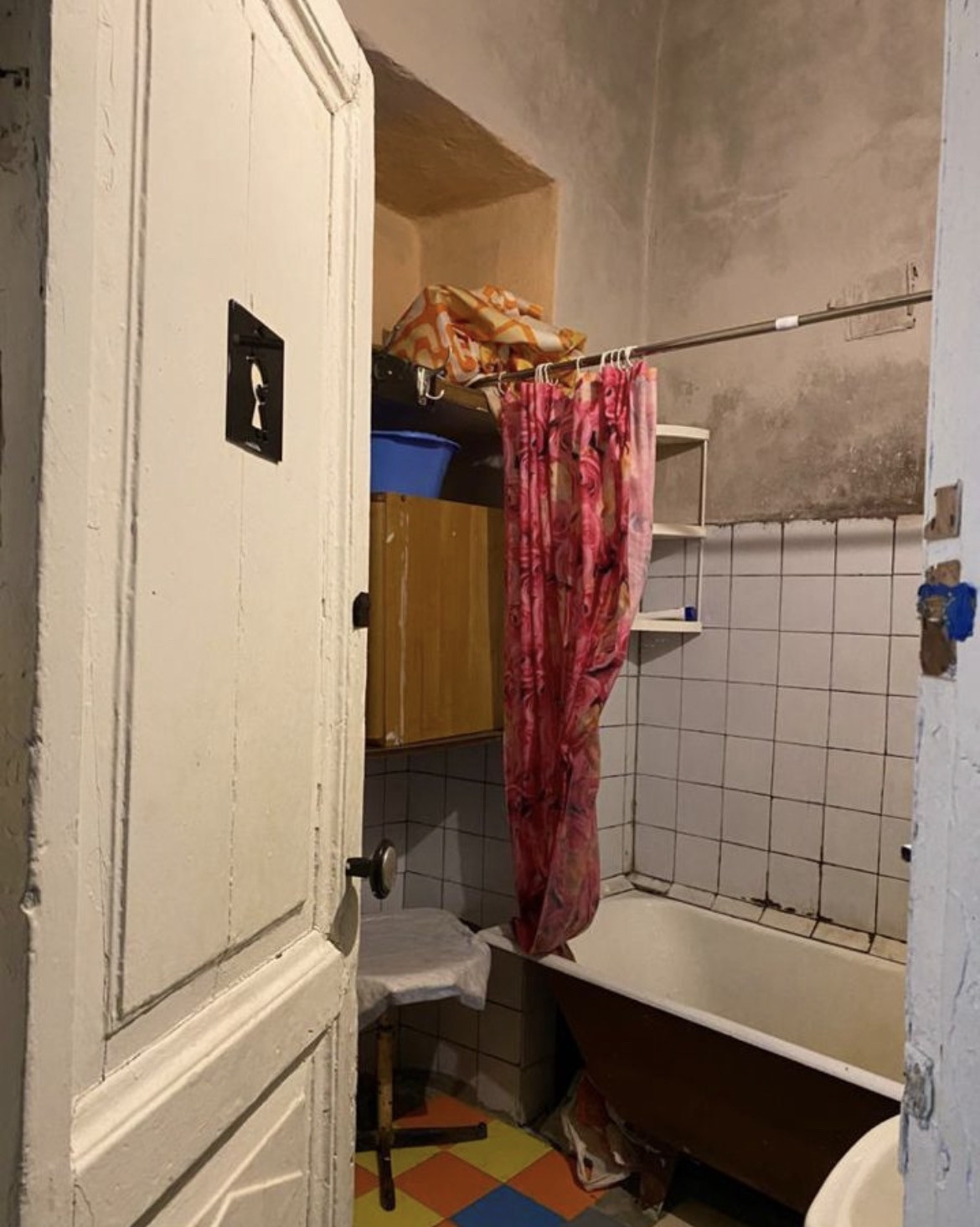 Квартира расположена на 5 этаже 5-этажного кирпичного дома 1902 года постройки, являющегося памятником архитектуры. Перекрытия в доме смешанные – дерево/бетон.