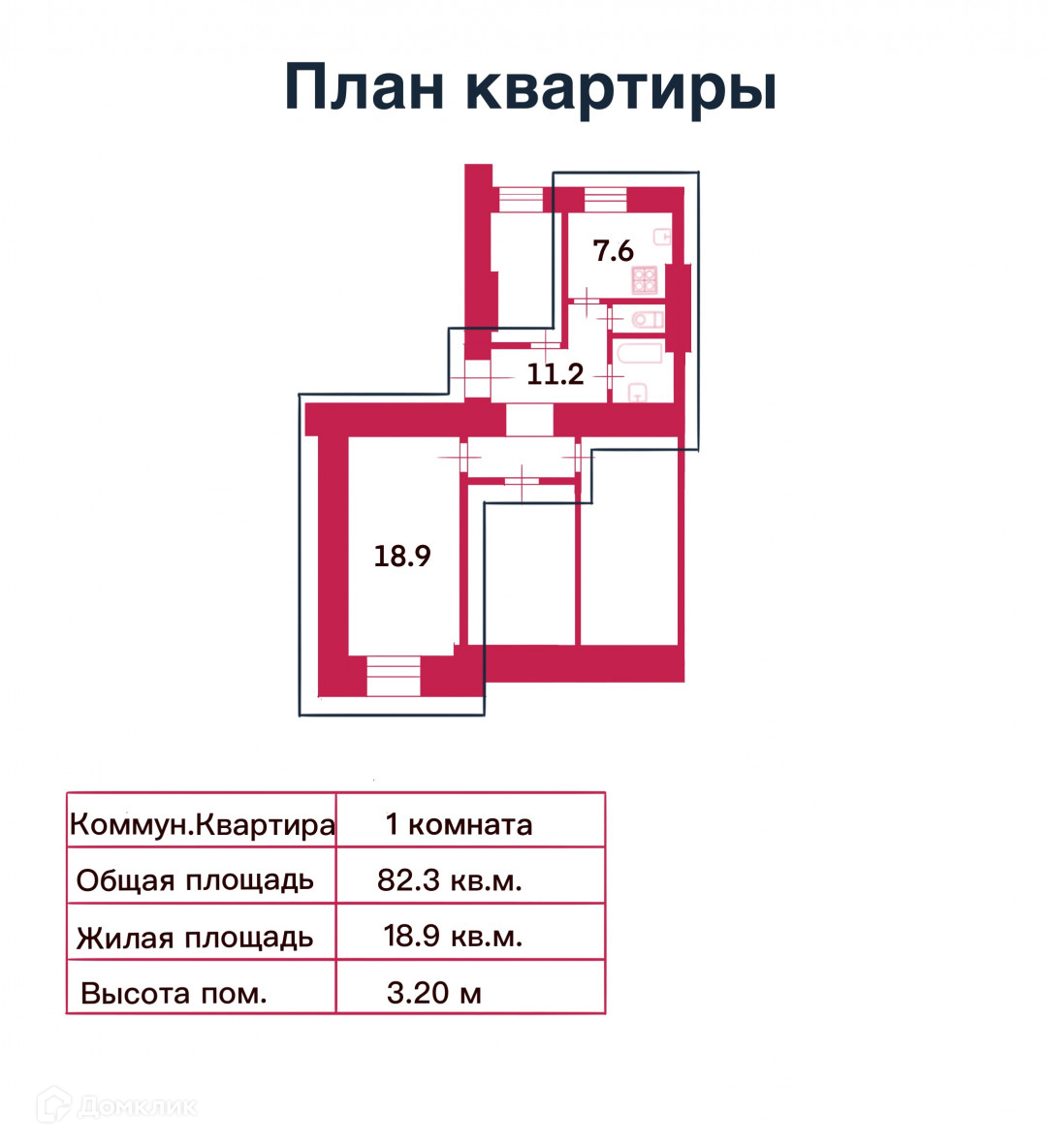 Общая площадь 82.3 м2