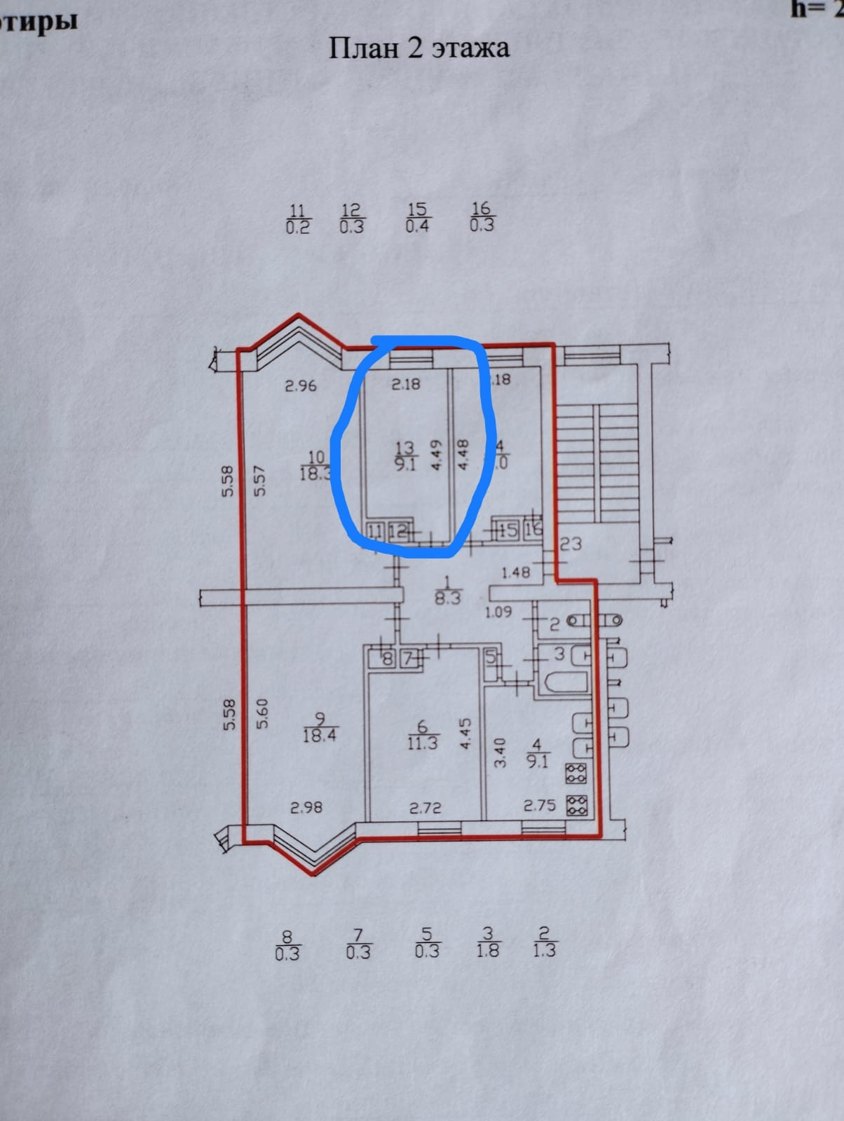 Жилая площадь 9.3 м2