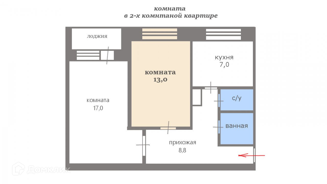 Ищите комнату в малонаселенной квартире? Для Вас идеальное предложение - комната 13 кв м в двухкомнатной квартире! Расположена на 7 этаже 9-ти этажного дома. Вся квартира чистая и ухоженная, в соседской комнате 17.0 м2 никто не живёт, ее можно взять в аренду или купить спустя пару лет. В 15 мин ходьбы метро `пр. Большевиков`, а в пешей доступности все, что нужно для жизни - магазины МАГНИТ и ДИКСИ, салоны красоты, медцентры, развлекательные, образовательные и культурные организации.