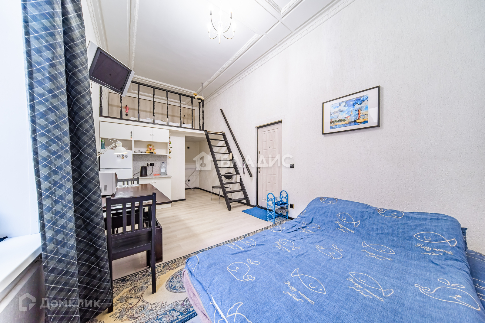 + в комнате установлен 2 этаж ( 7 квадратных метров) на котором оборудовано спальное место со светильниками для чтения. Под ним большая гардеробная.