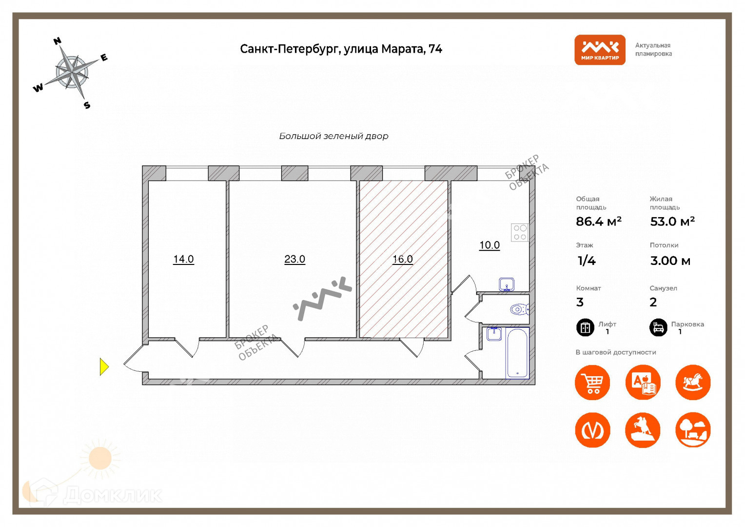 Общая площадь 86.4 м2