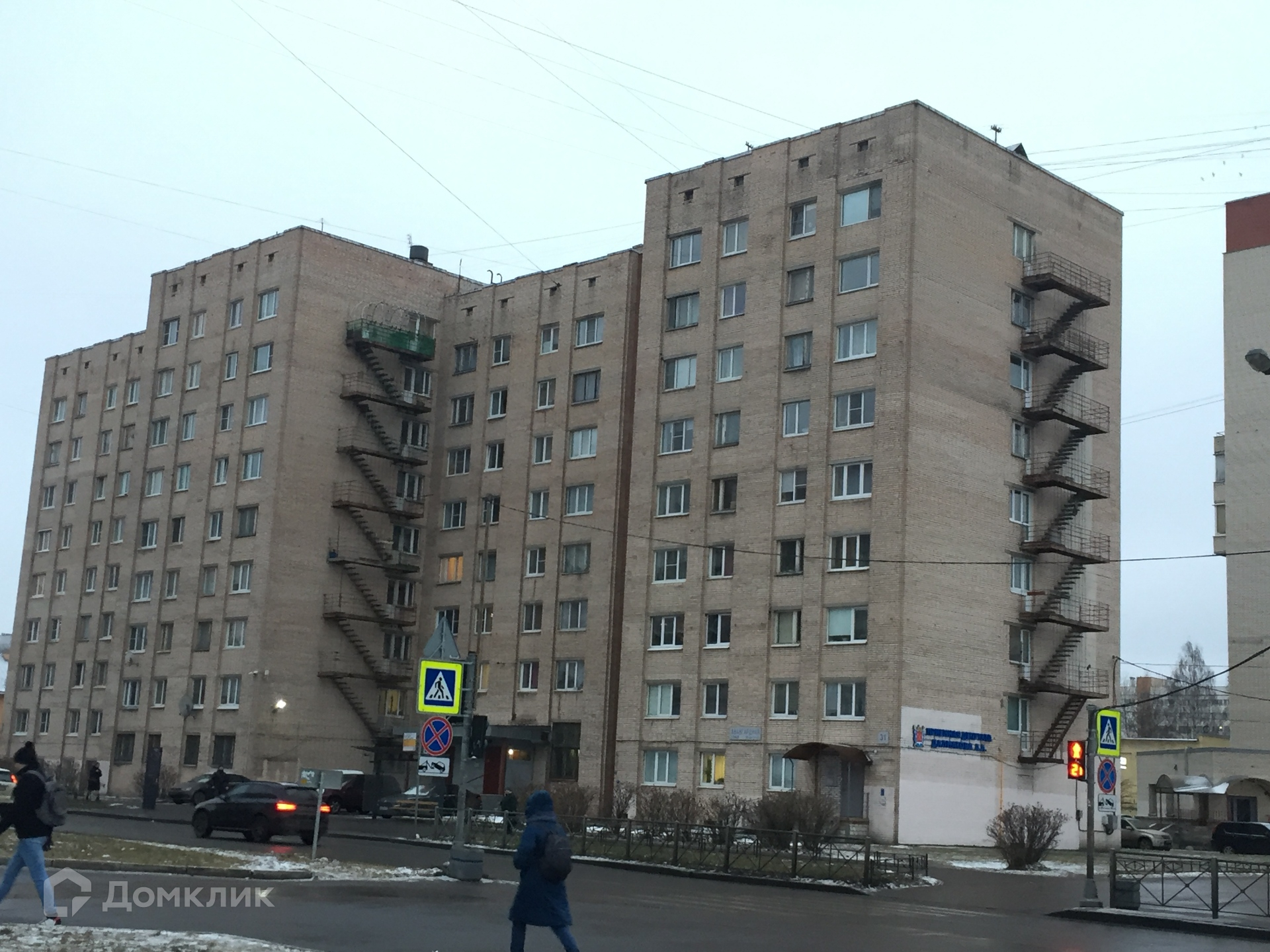 -Тип постройки - кирпичный дом 9 этажей, довольно необычного для кирпичных домов того времени серо-розового цвета.