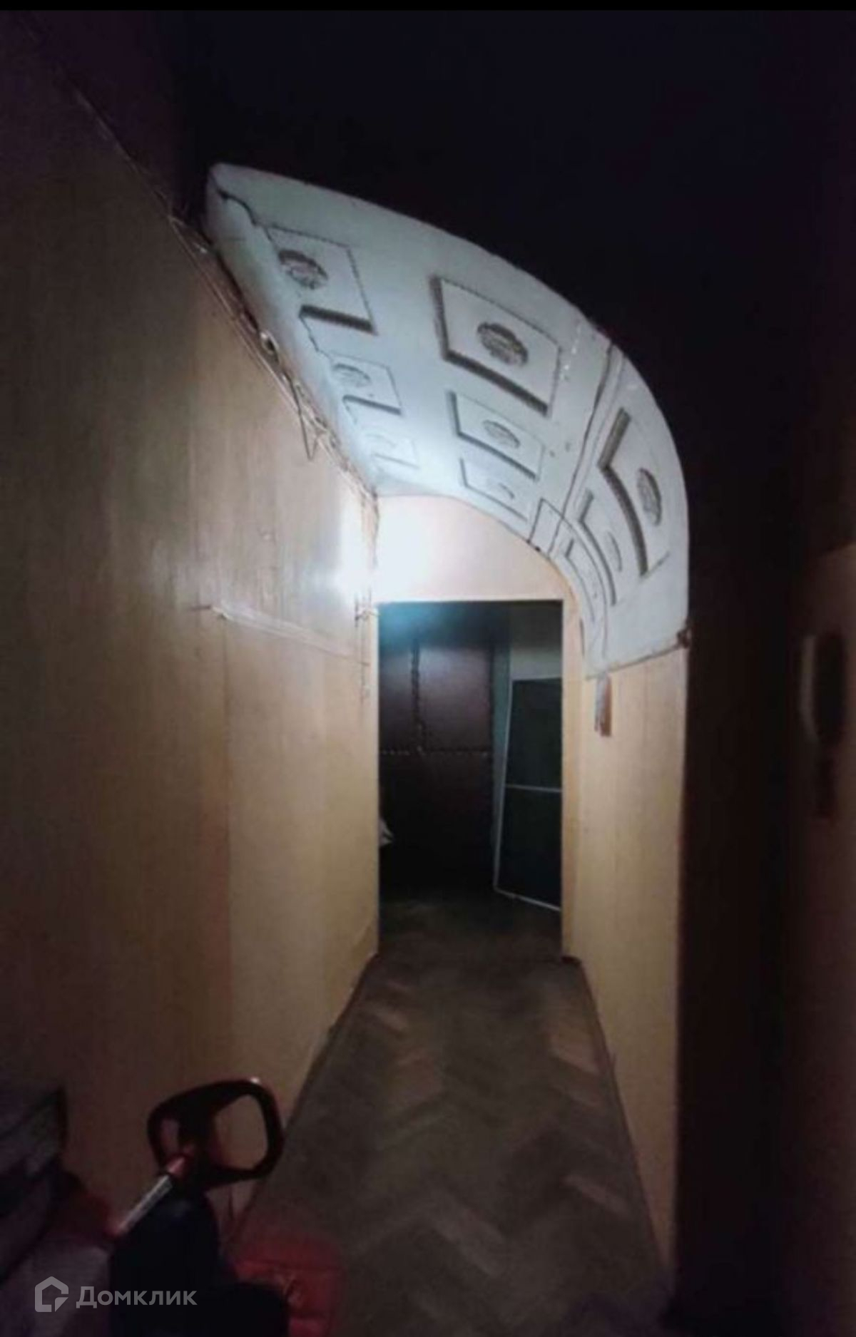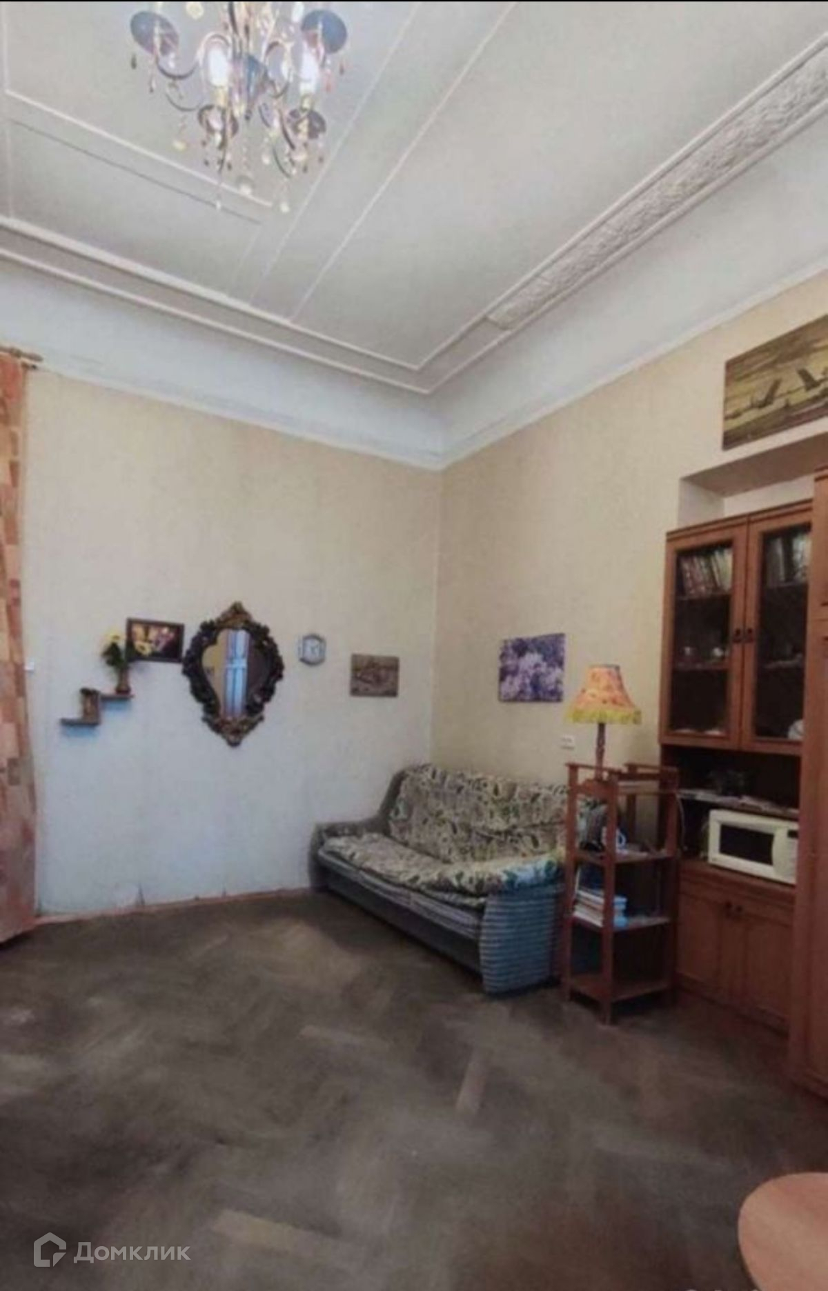 На полу хороший дубовый паркет, потолок в хорошем состоянии.