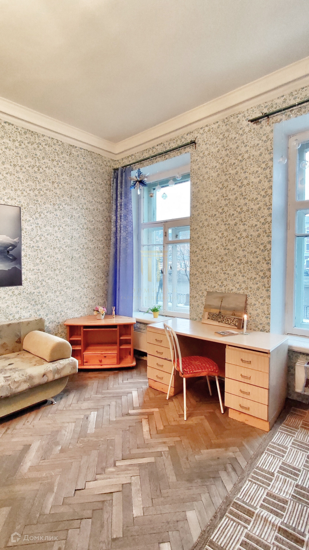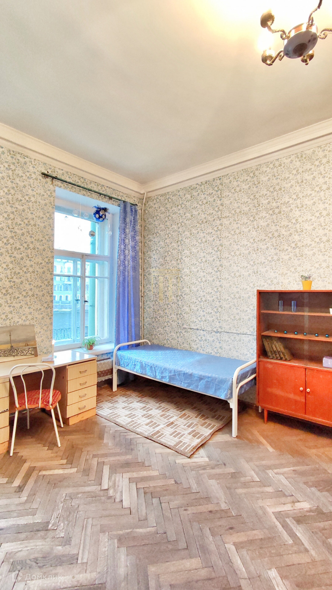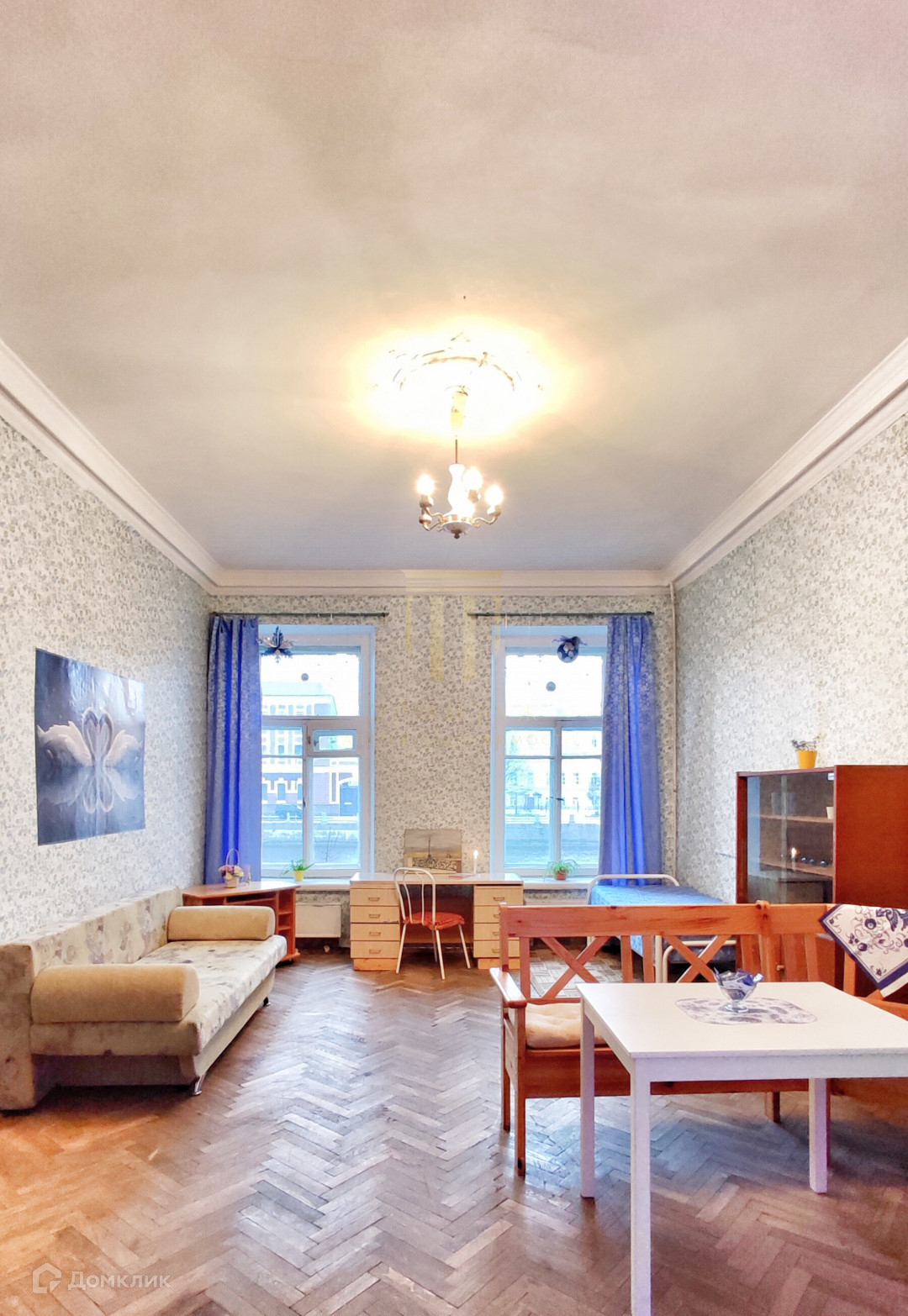 Комната 26 кв.м. правильной прямоугольной формы, 2 окна. Окна выходят на р.Фонтанку.