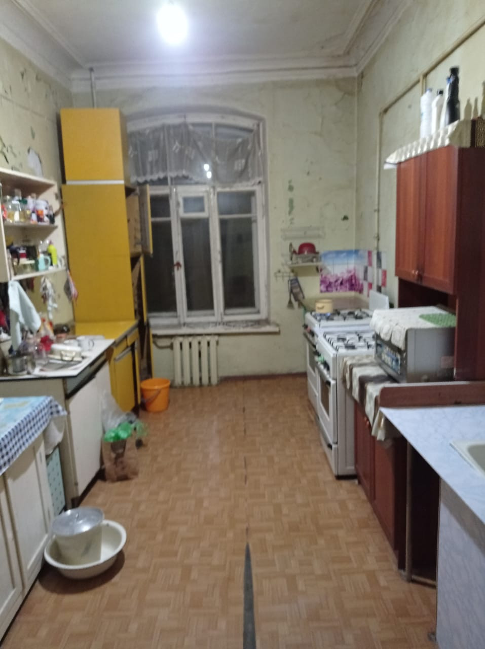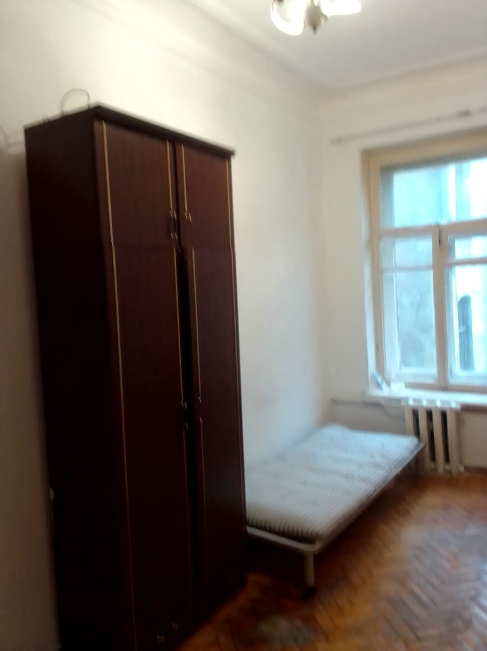 В комнате сделан косметический ремонт. Вся мебель остается.Окно во двор.Длинный коридор.Высокие потолки-3,2 метра.Просторная кухня-15 метров.Есть арендатор.Согласен снимать и дальше.