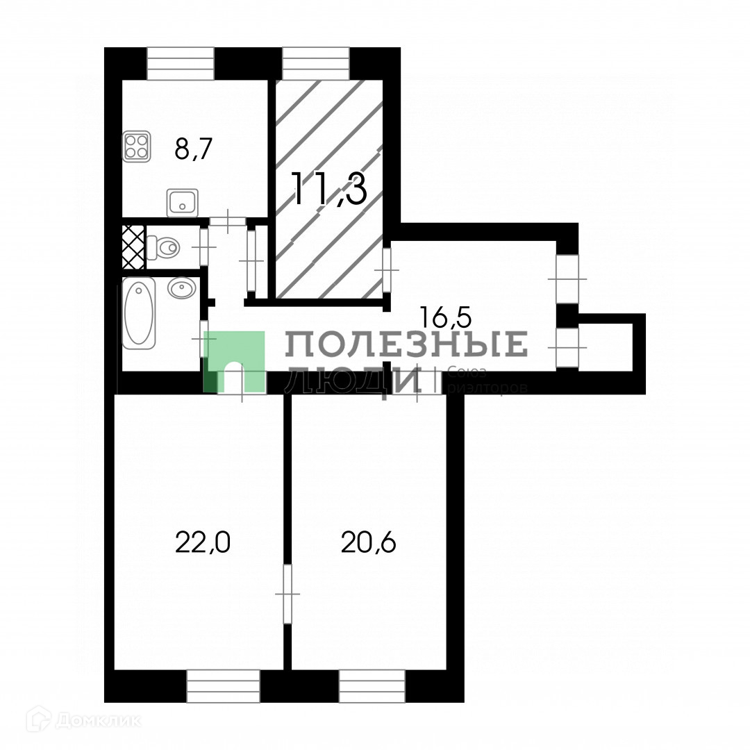 Жилая площадь 11.3 м2