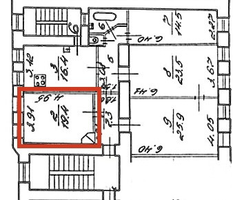 Жилая площадь 19.4 м2