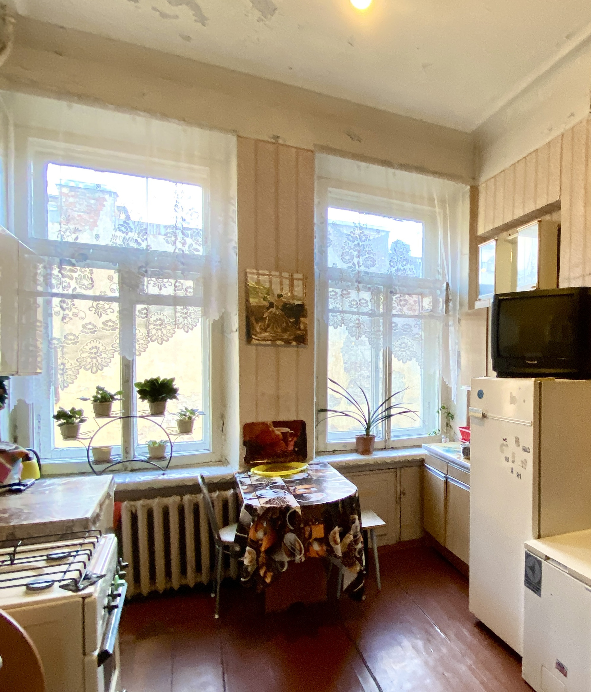 Чистая парадная, высокие потолки, окна видом во двор. Квартира с отдельной новой ванной, оборудована местами хранения. Идеальный порядок во всей квартире. Интеллигентные приятные соседи без вредных привычек. Шесть человек проживающих.