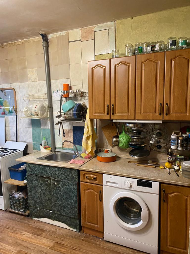 - Одна из четырех комнат много лет пустует, в двух остальных проживает одна семья.