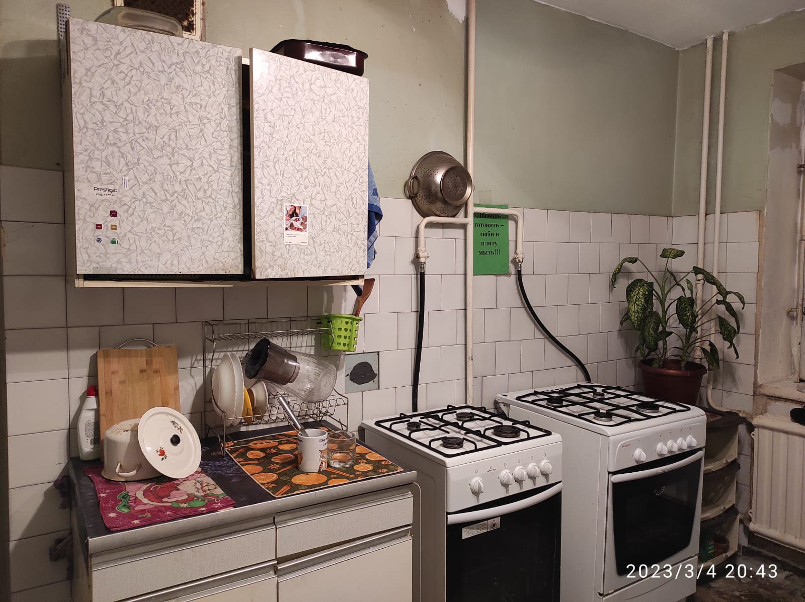 На кухне 2 газовые плиты и 2 раковины. У каждой комнаты своё выделенное место для приготовления еды.