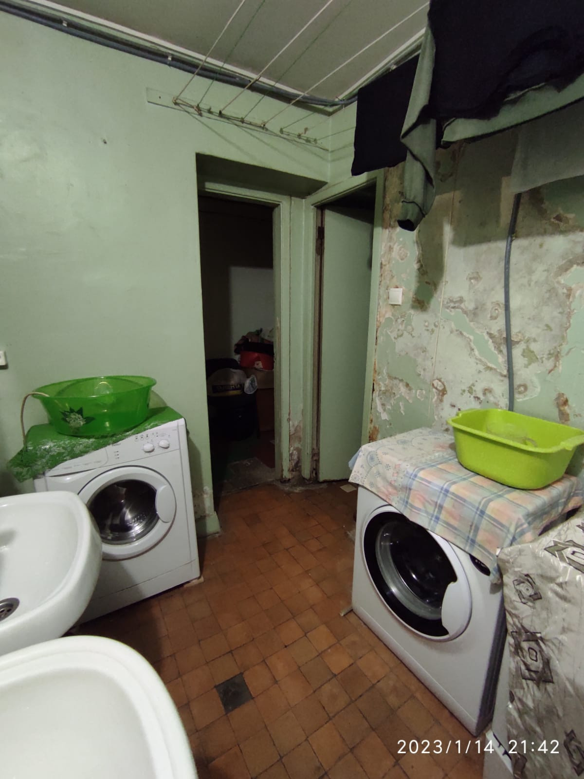 Туалетная кабина – на 3 комнаты. Люди живут только в двух. Очереди никогда нет. В душевой недавно сделан ремонт – осталось только обновить покрытие на поддоне. В умывальной своё место для стиральной машины, где она и стоит. Проведена своя отдельная розетка.