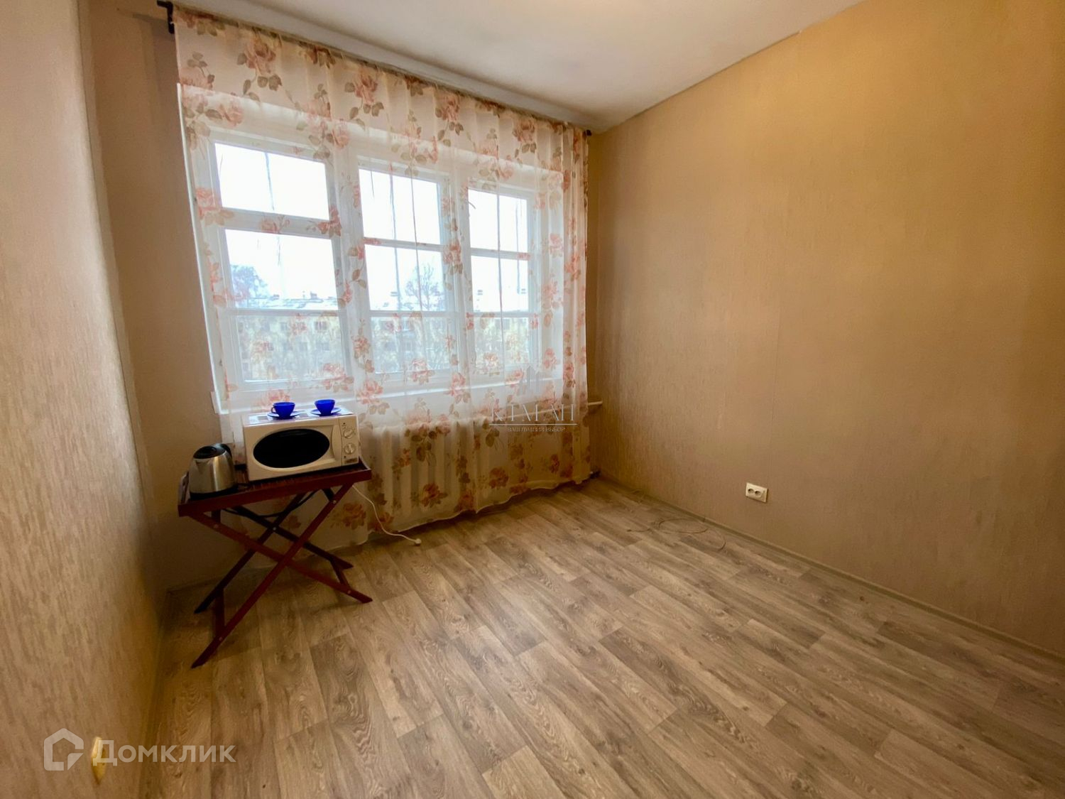 Комната: светлая, теплая, уютная, с большим окном, окна выходят в тихий двор, остаётся шкаф, ремонт не требуется.