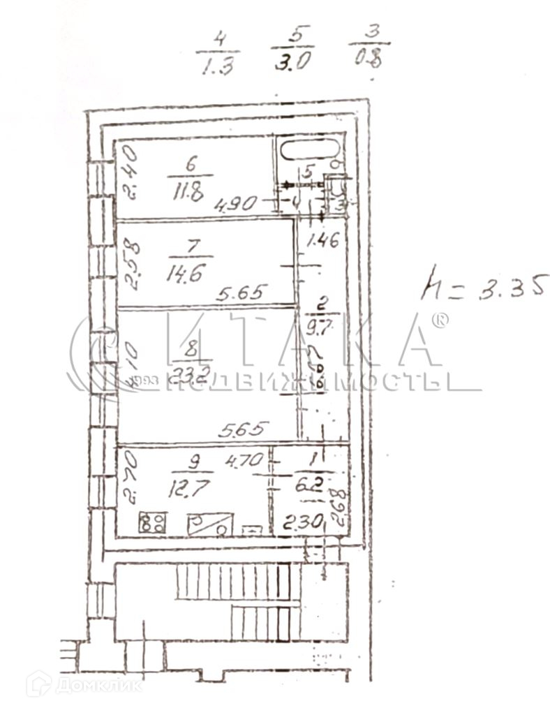 Высота потолков 3.35 м