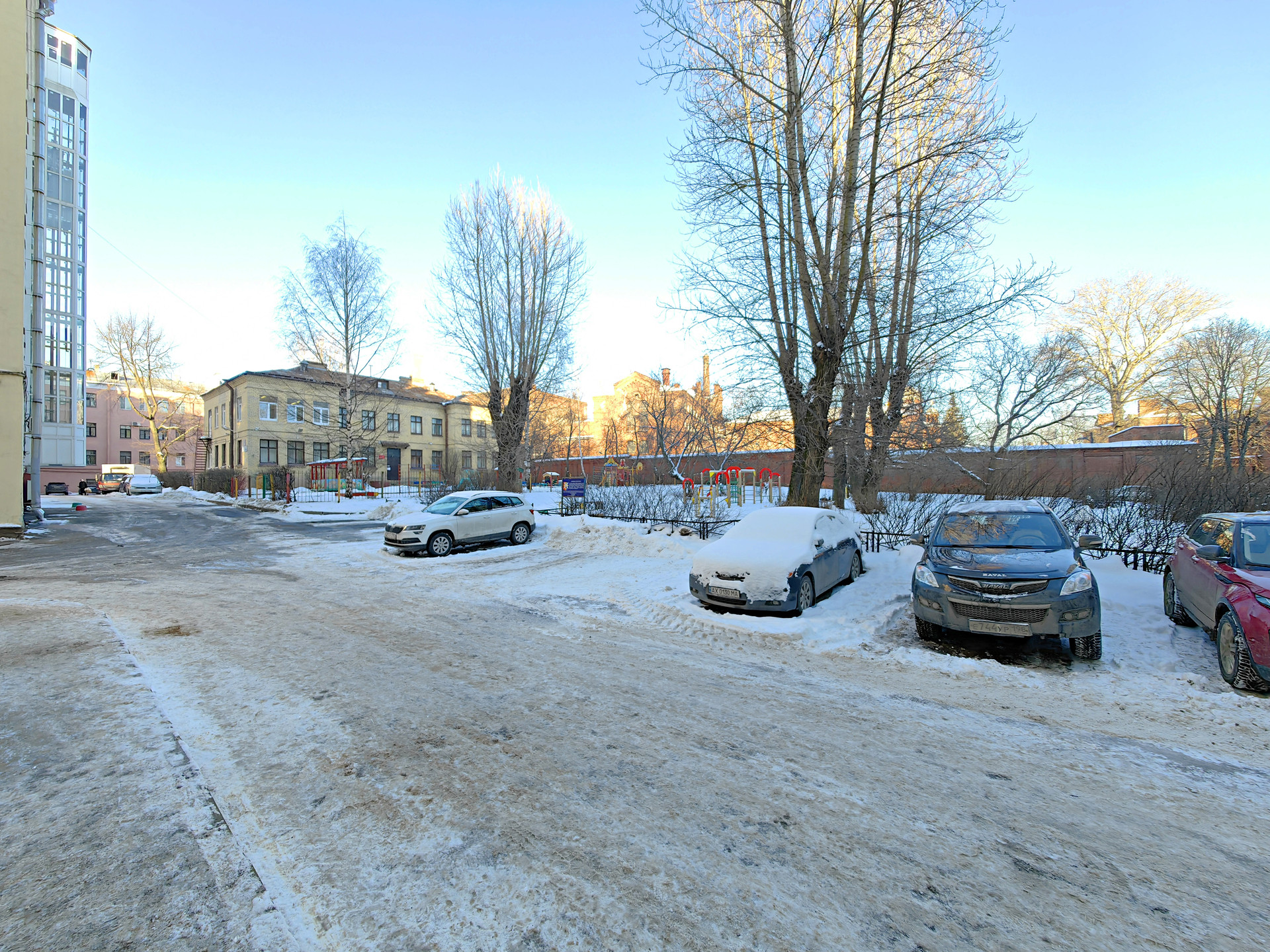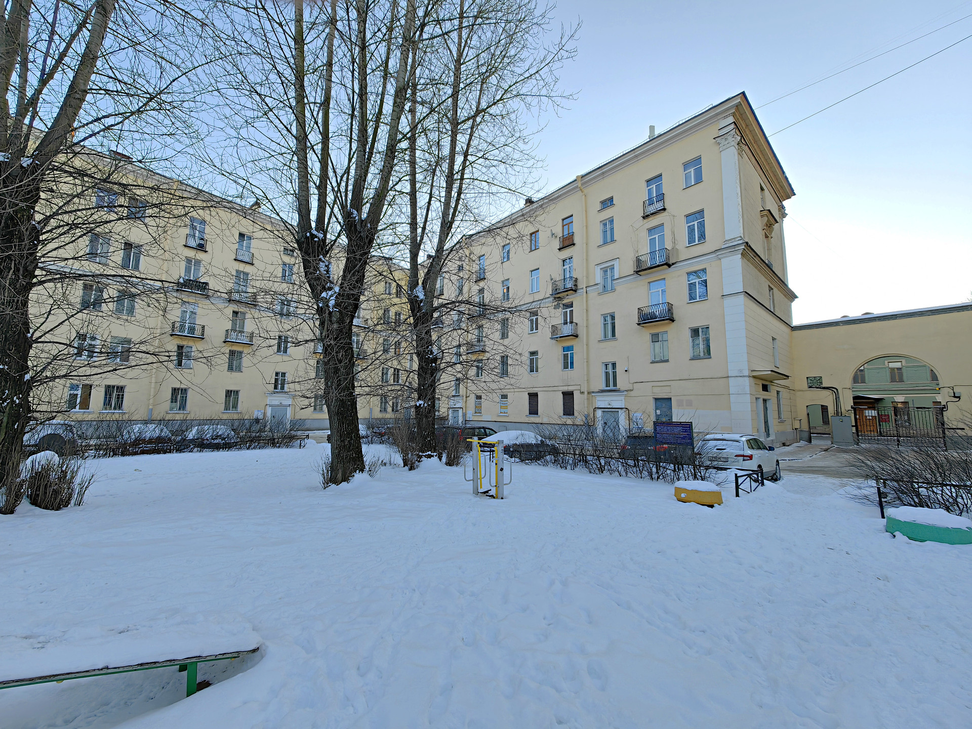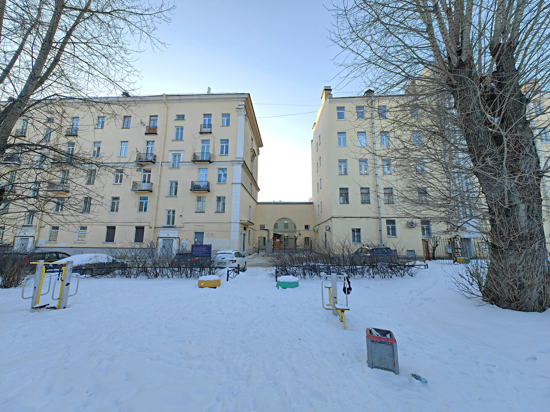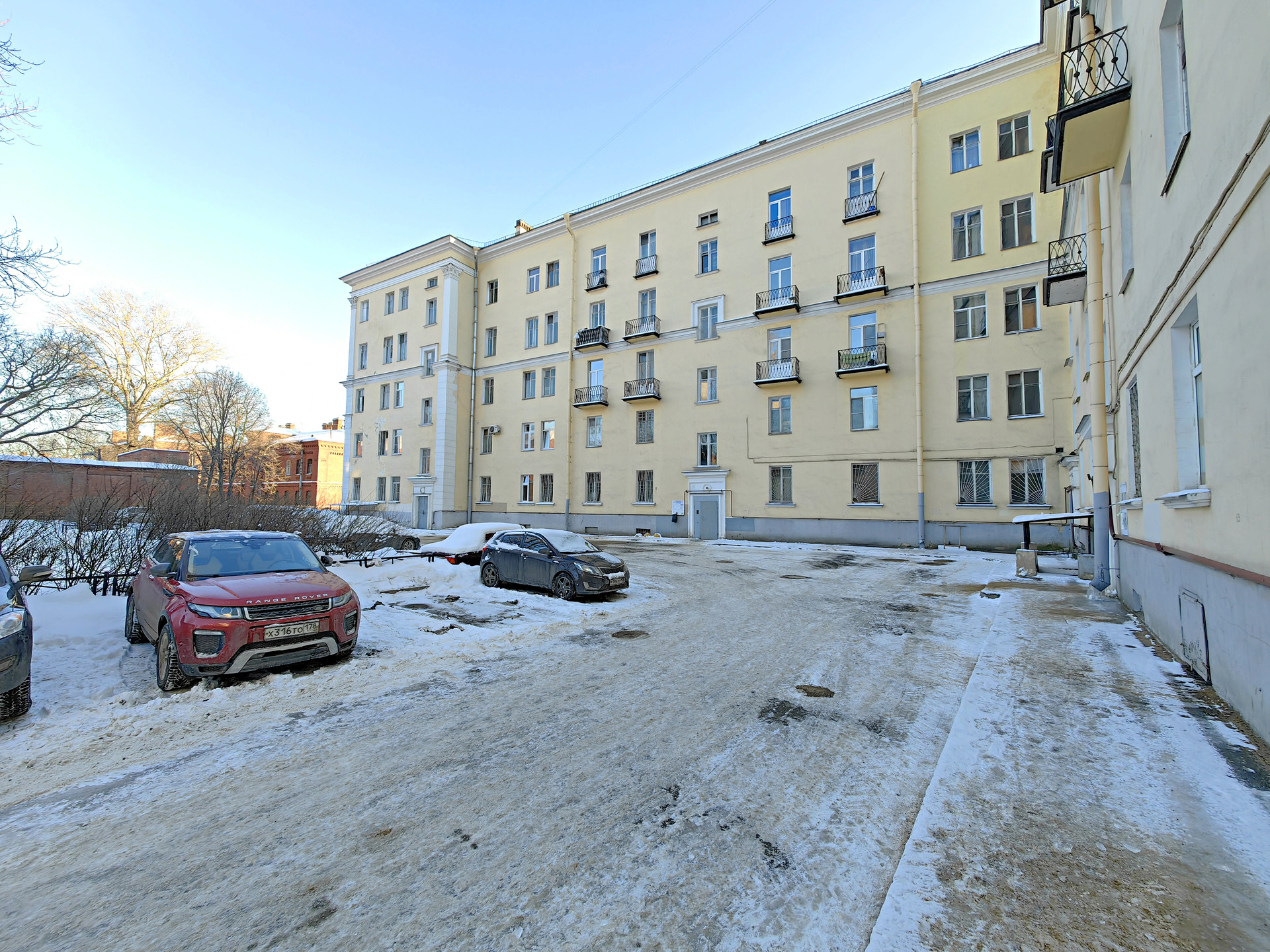 - Кирпичный «Сталинский» дом 1950 г.п. вход со двора 3 этаж из 6, лифта нет. Большой закрытый двор с Парковкой, детской площадкой, школой.