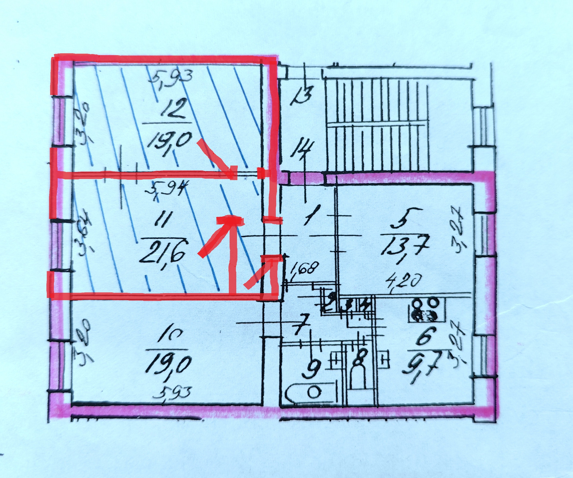 -Площадь комнаты 19 м² (подойдёт для переделки в студии). Вторая комната 21 м² тоже продаётся. Высокие потолки 3,3 м.