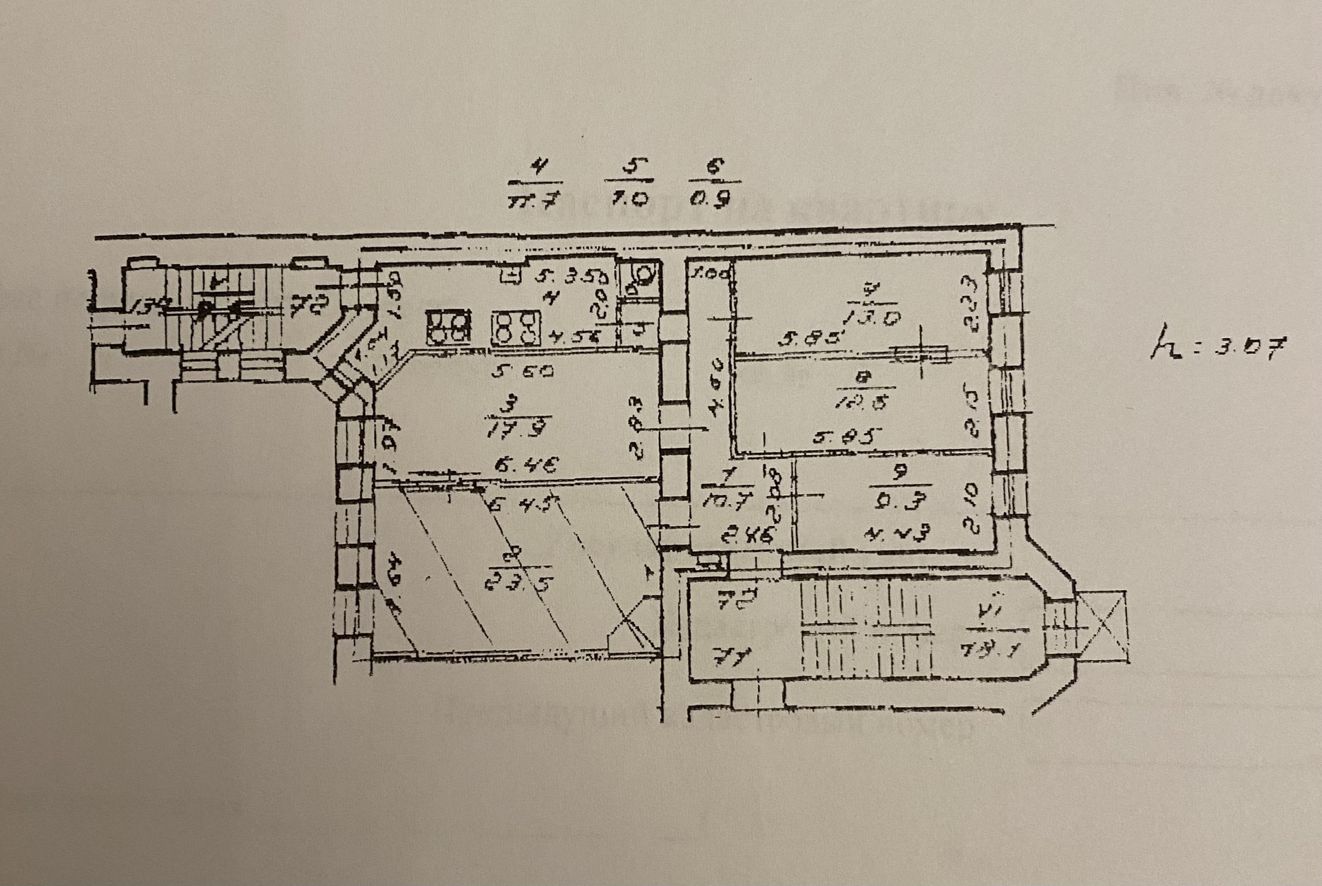 Высота потолков 3.07 м