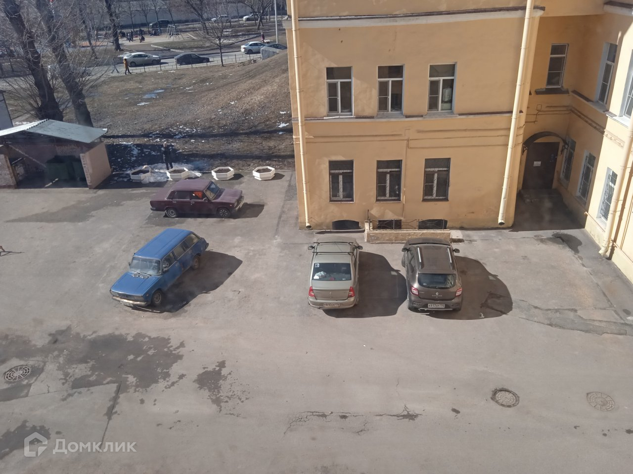 Комната квадратной формы с двумя окнами , выходящие во двор .