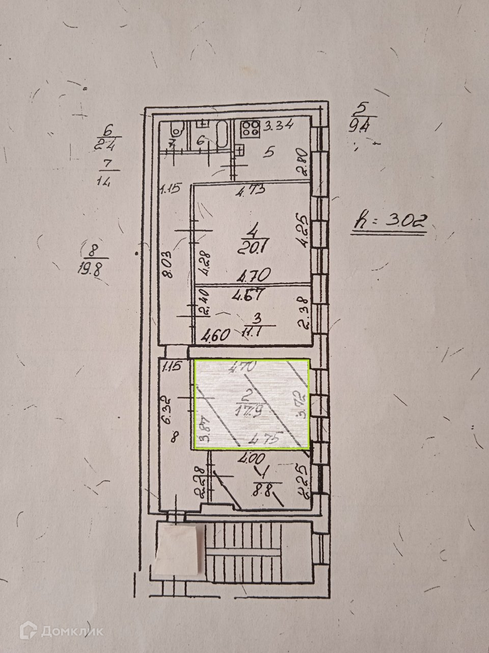 Высота потолков 3.02 м
