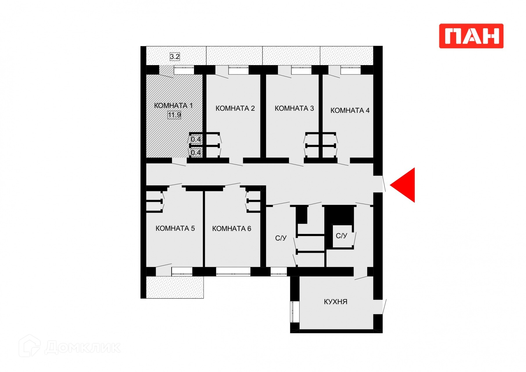 Площадь комнат