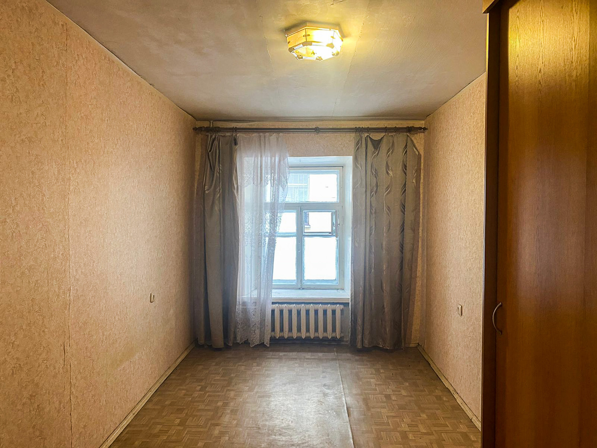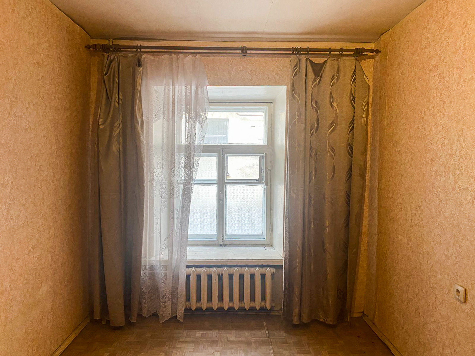 Уютная светлая комната большим окном выходящим в тихий двор.