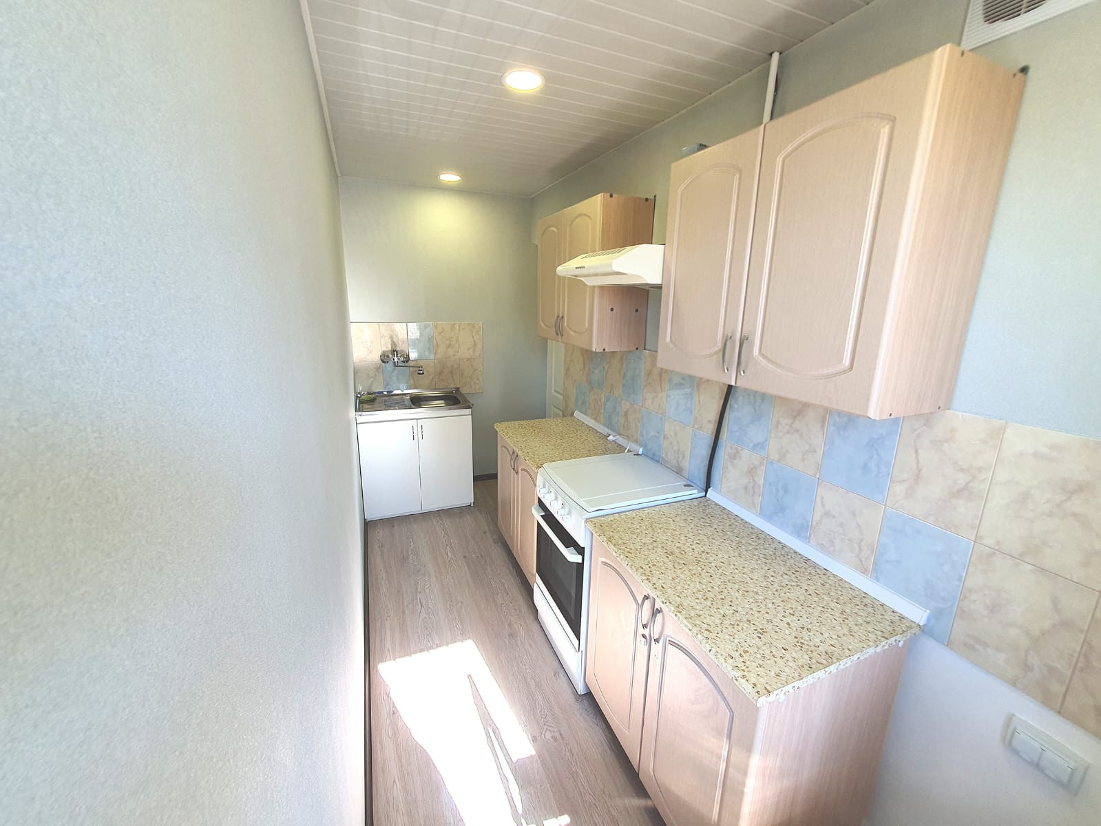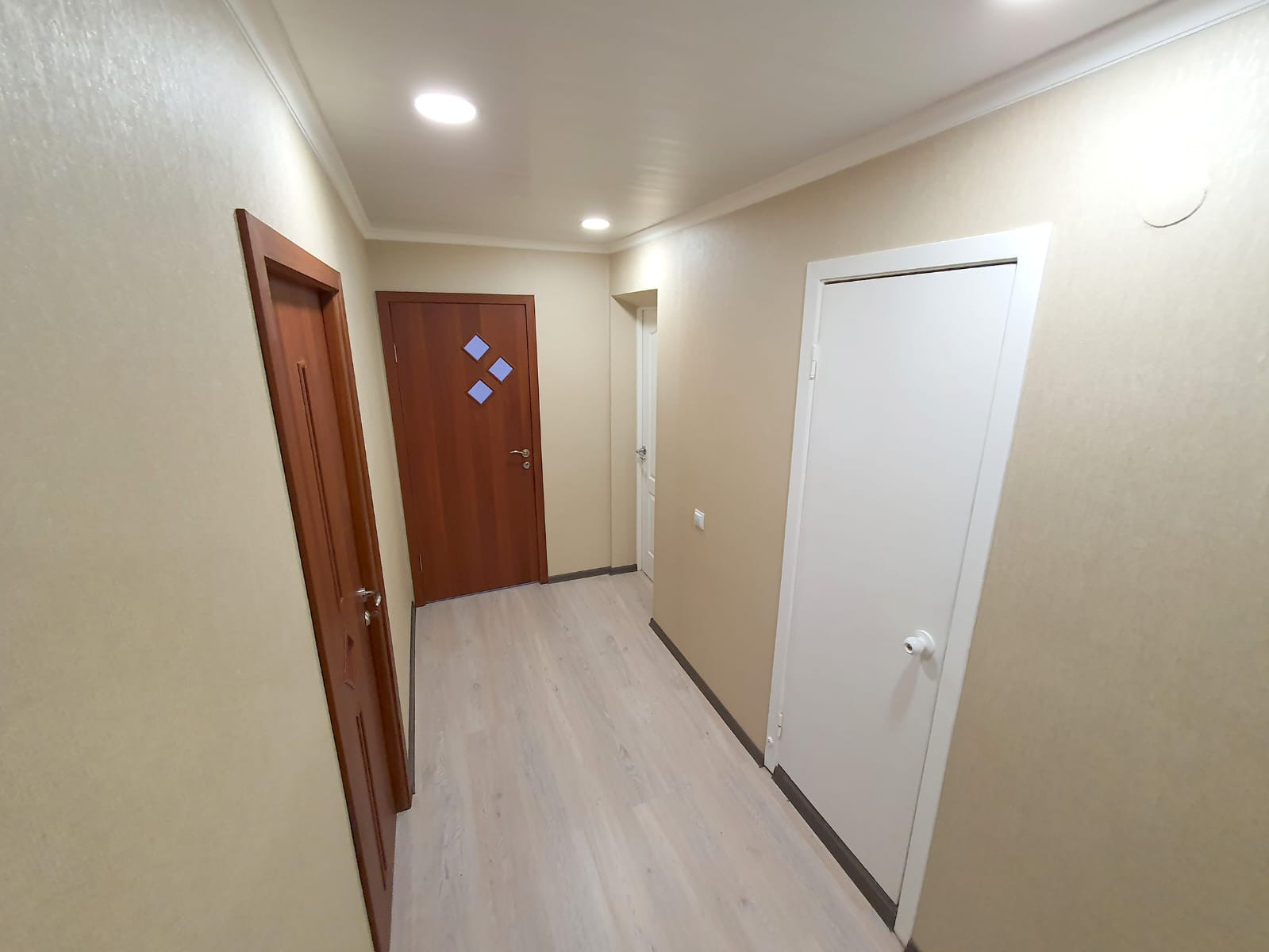 Во всем блоке сделан хороший ремонт, заменена электрика, полы и стены выровнены, в комнатах и коридоре ламинат. В ванной комнате плитка, есть места для стиральных машин.