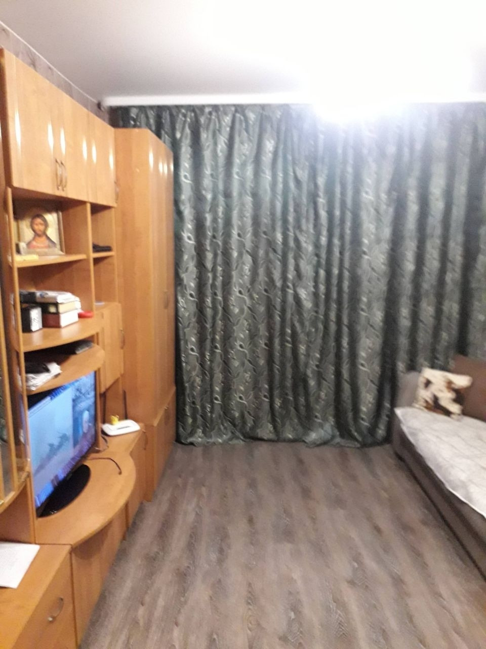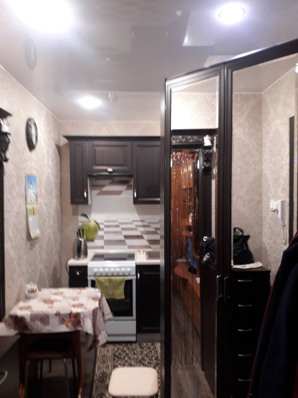 Комната светлая просторная, поделена на две зоны: кухню и гостиную.В комнате сделан качественный ремонт, выравнены стены, вся новая проводка, стеклопакет. Продается со встроенной кухней и техникой(вытяжка Elikor,электрическая плита Indezit, холодильник 2х камерный Indezit), каменная мойка с сушилкой,кран немецкий и продается всей мебелью (стенка,диван,кресло,прихожая,угловой шкаф в прихожей и тумбочка,кухонный стол с табуретками.) Во всей секции сделан косметический ремонт,есть общая кухня с двумя газовыми плитами. На кухне свое место с подводкой под стиральную машину,остается стол, подвесной шкаф.Есть общая комната-сушилка для белья и кладовая комната для хранения вещей и колес.Мойка и душ в идеальном состоянии.Туалет под ключ на 2 комнаты.