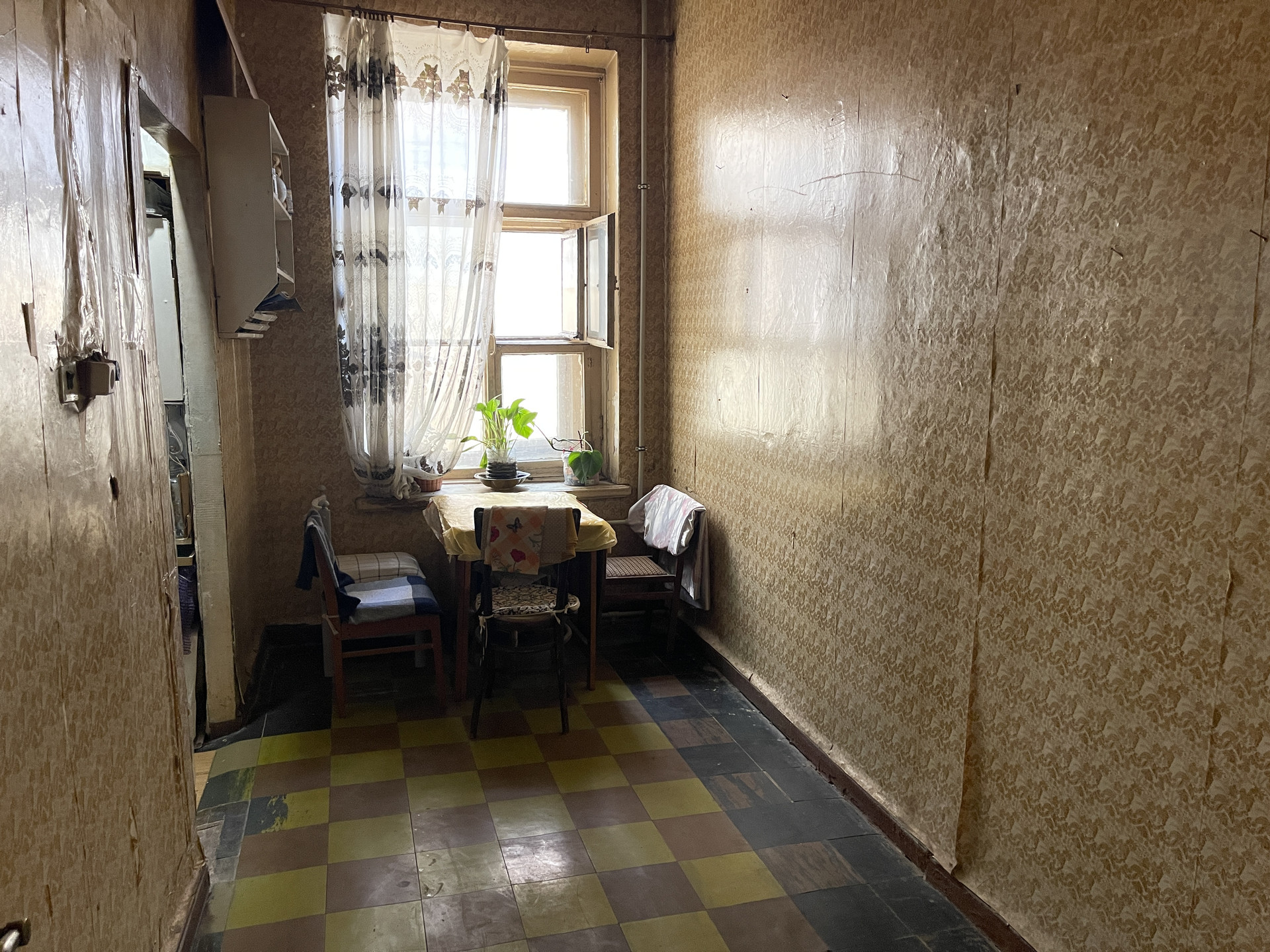 Кирпичный дом 1860 года постройки. Комната уютная, теплая, светлая, в МАЛОНАСЕЛЕННОЙ 6-ти комнатной КВАРТИРЕ. Потолки 3,2 м.Комната 10,7 м, Места общего пользования как на фото. Все фото полностью соответствуют реальности. Недавно произведен капремонт крыши и фасада, в комнате вставлен стеклопакет и заменен радиатор отопления. (Шкаф, который на фото не остается).