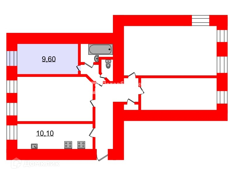 Жилая площадь 9.6 м2