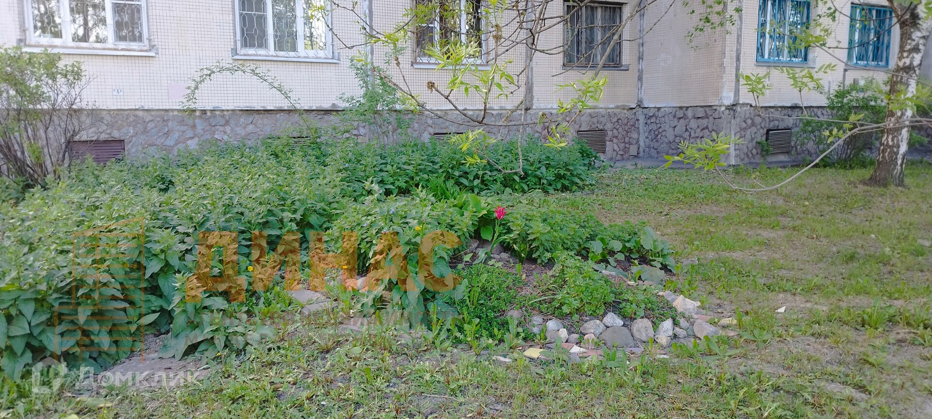 Вид из окна на тихий, зелёный двор. Напротив дома большой сквер.