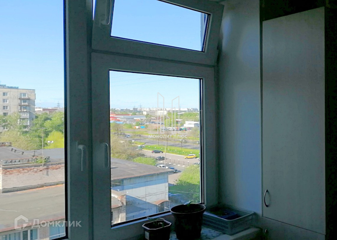 Вид из окон на: проспект Энергетиков и зеленый двор. Стеклопакеты. Железная дверь.