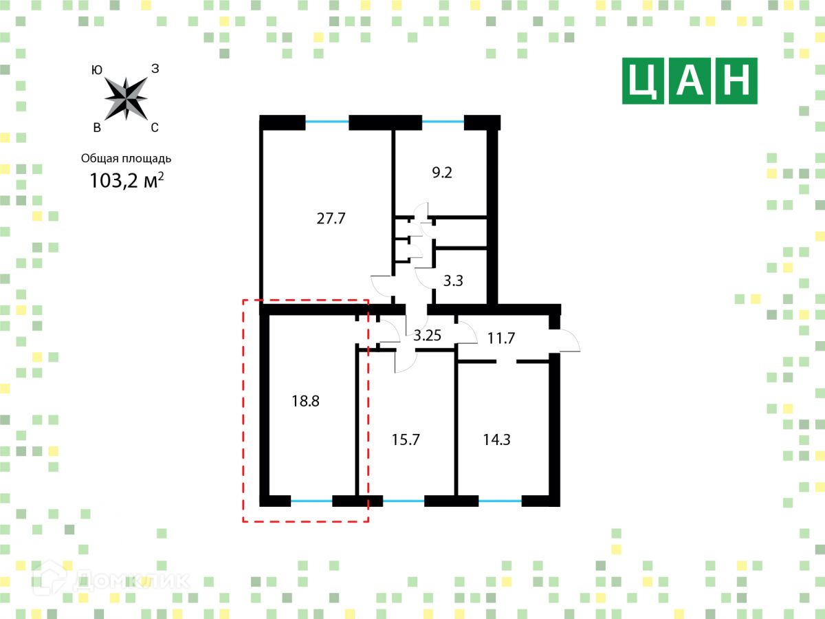 - Общая площадь 103.2 кв.м.