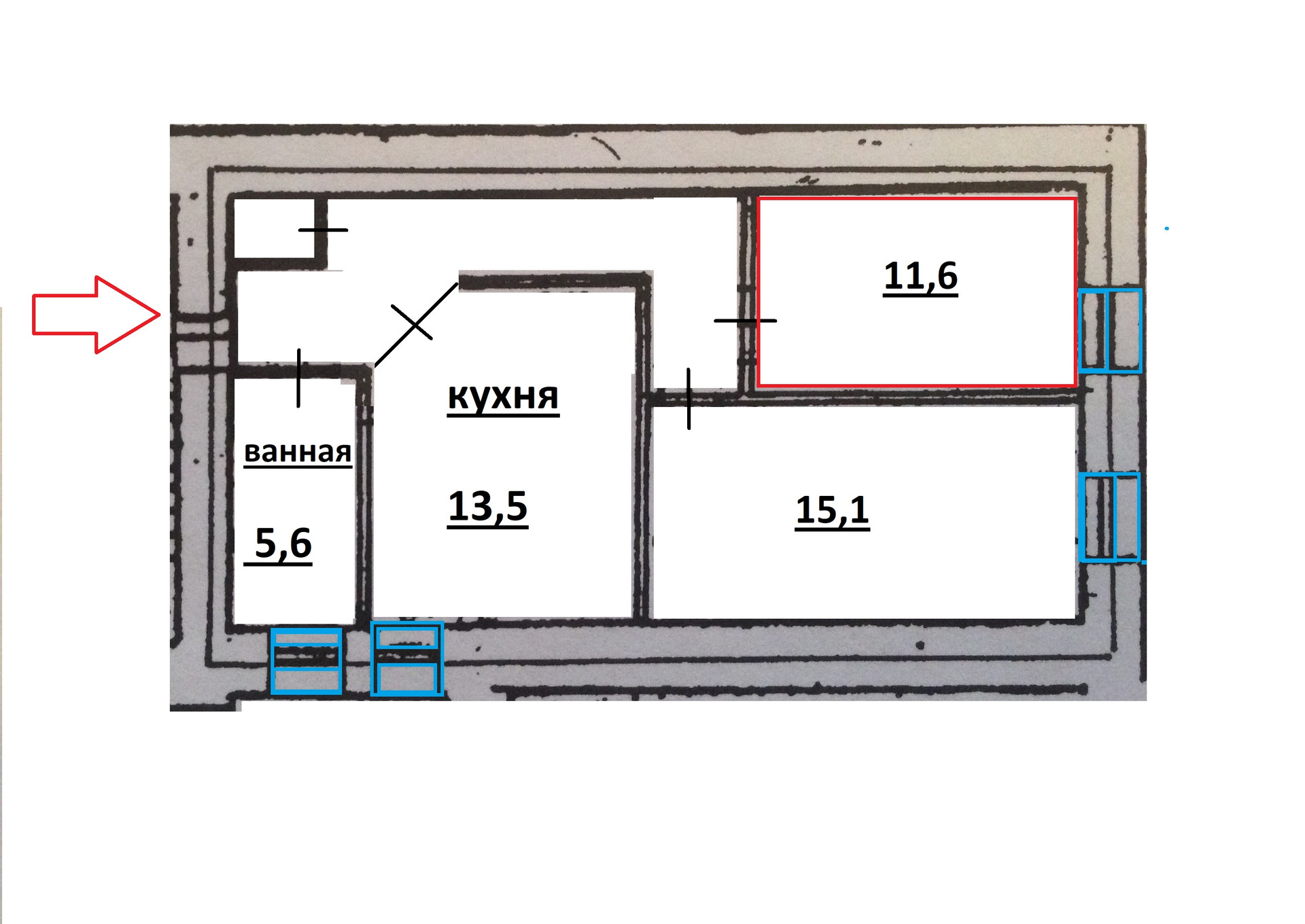 Площадь кухни 13.5 м2