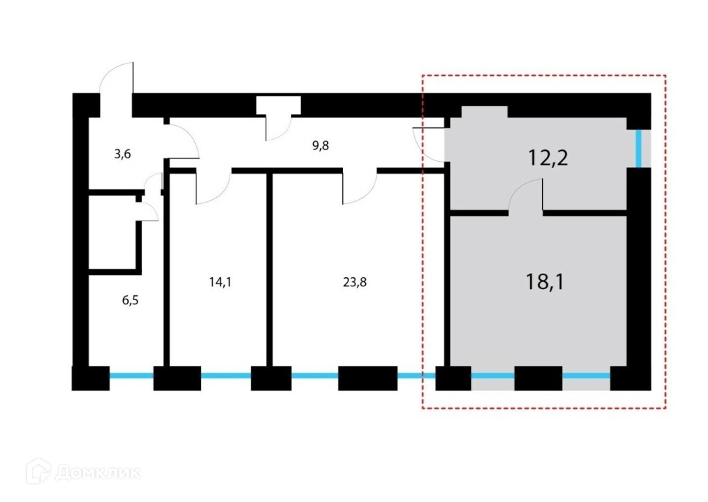 Жилая площадь 30.3 м2