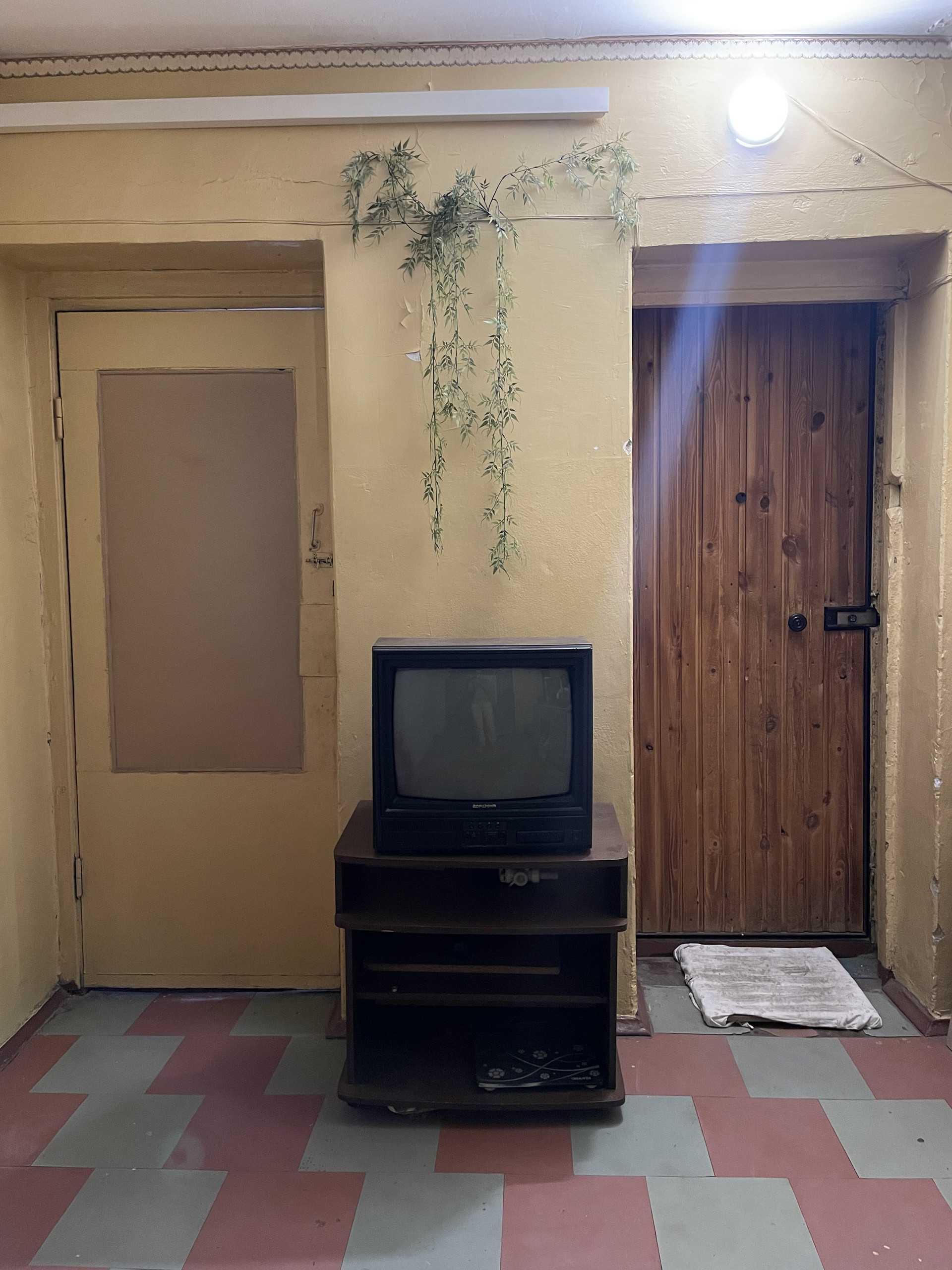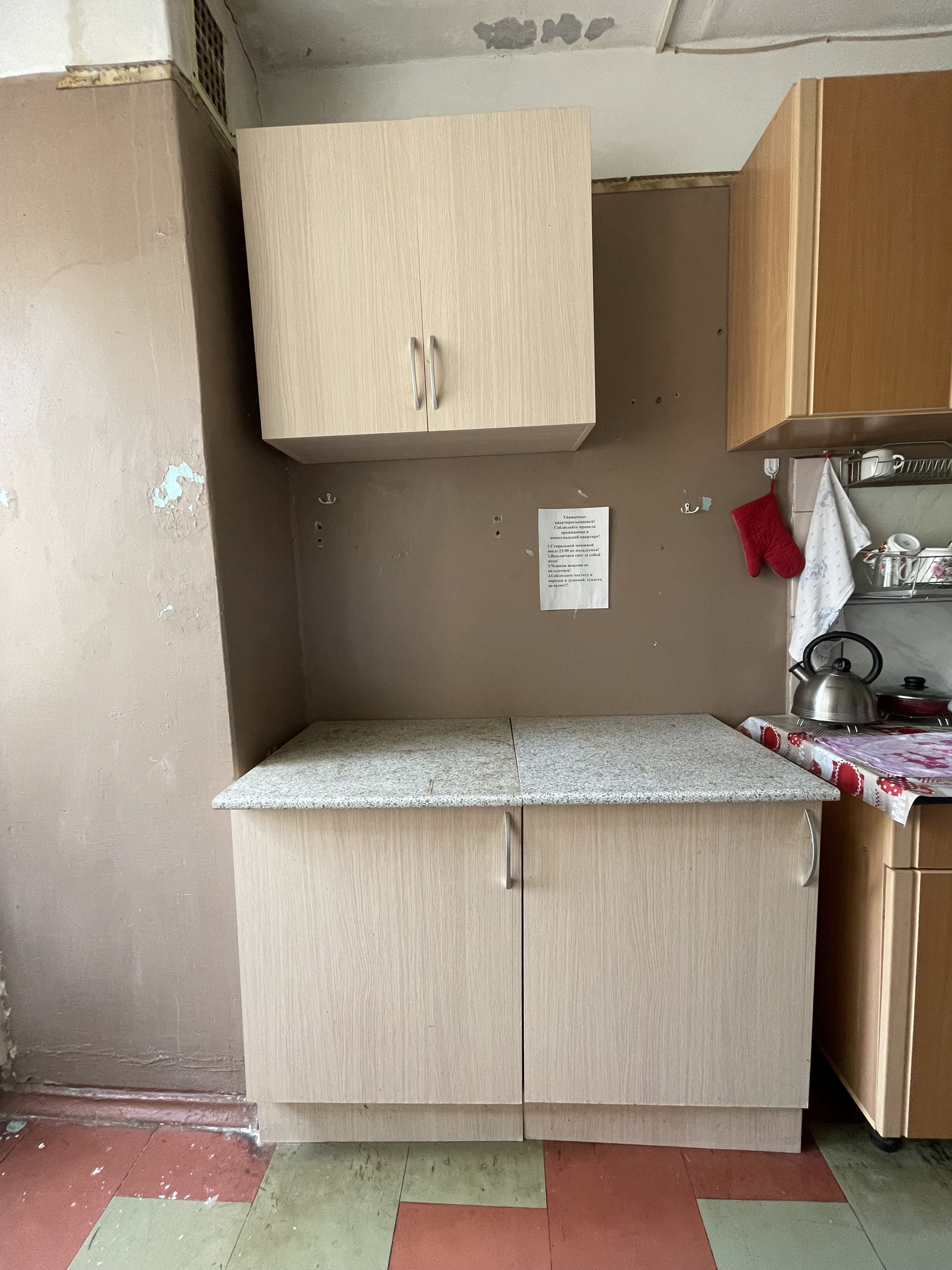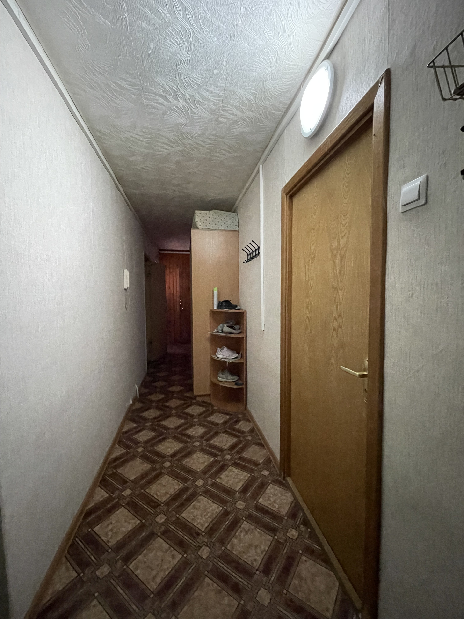 Чистый, большой коридор со шкафом и вешалками, кухня, свой стол и раковина, есть выход на балкон, туалет, душевая и умывальная комната.