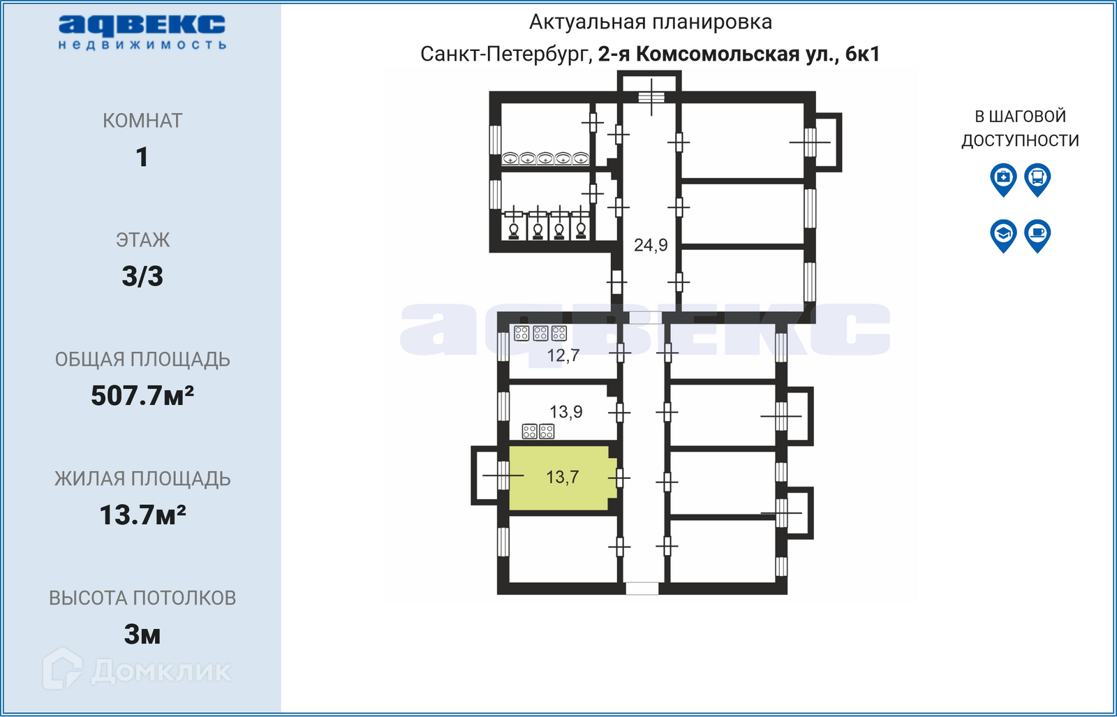 Комната, 507.7 м2, на продажу в Санкт-Петербурге, 2-я Комсомольская улица, 6к1