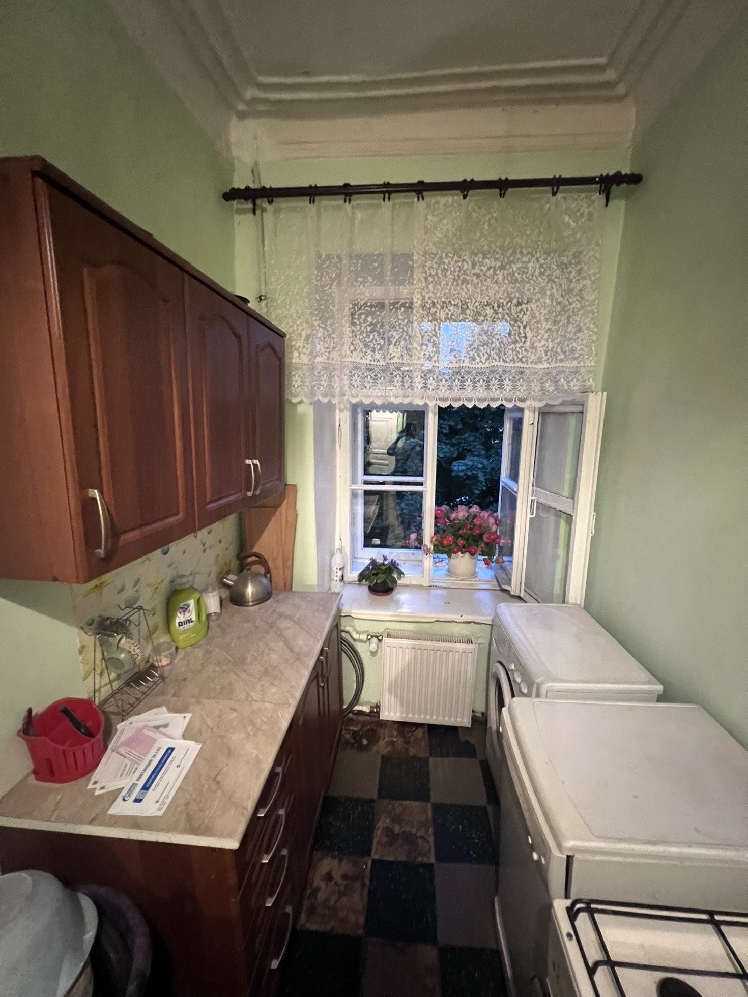 В комнате сделан ремонт, заведена холодная вода, остаётся вся мебель и техника (холодильник, посудомоечная машина, стиральная машина) всё в хорошем состоянии. Места общего пользования в хорошем состоянии.