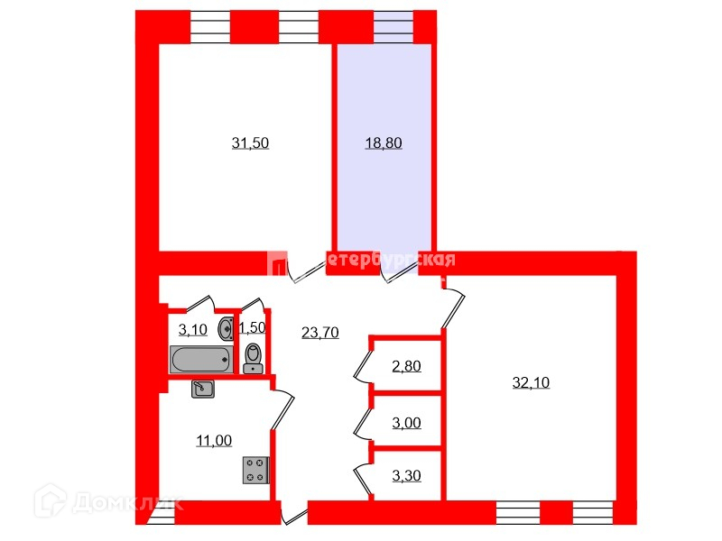 Жилая площадь 18.8 м2