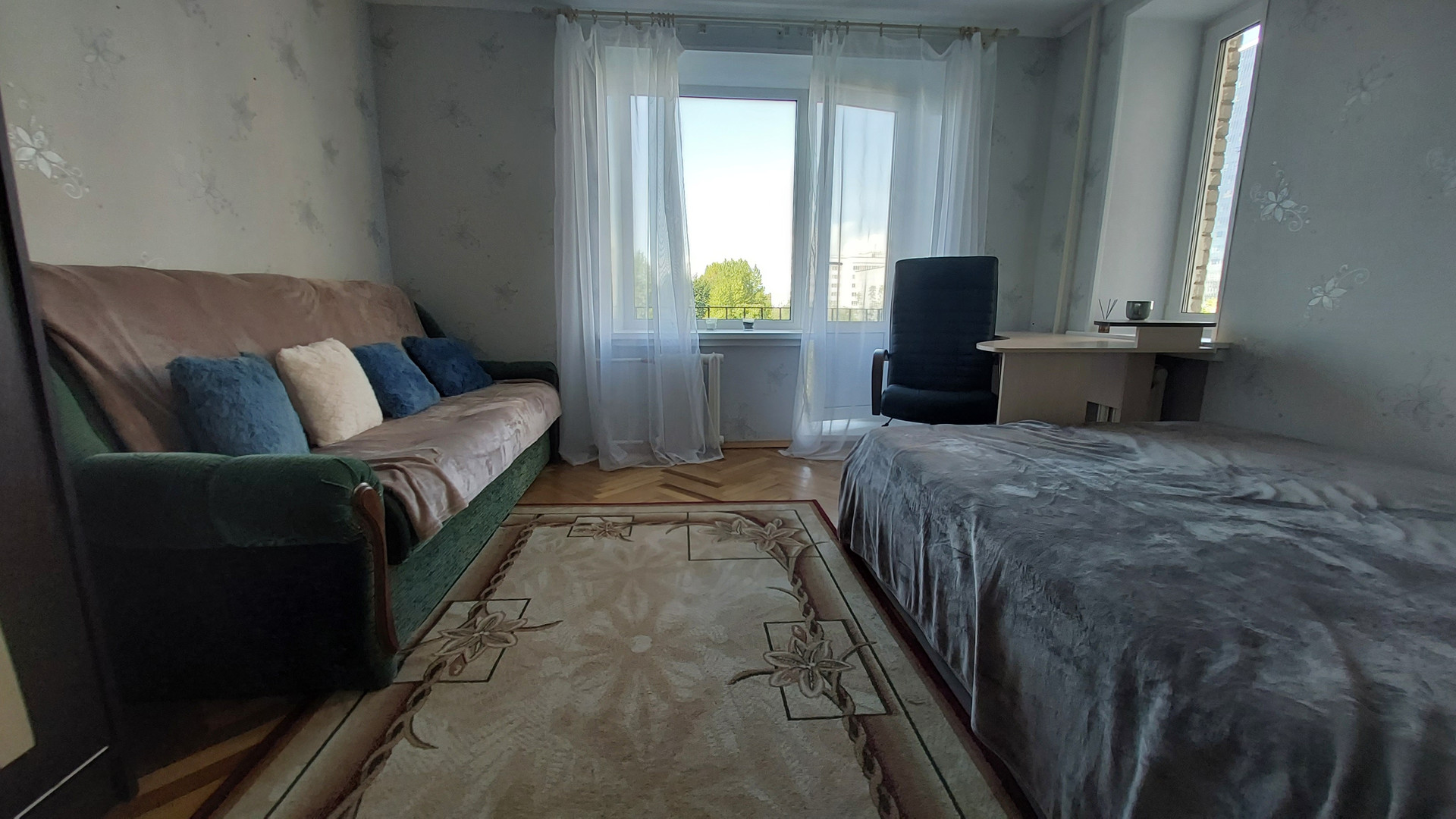 Новому собственнику остается шкаф-купе, кровать с матрасом аскона, диван, компьютерное игровое кресло, компьютерный стол, стиральная машинка, холодильник, микроволновая печь. Мебель почти новая, в комнате мало жили.