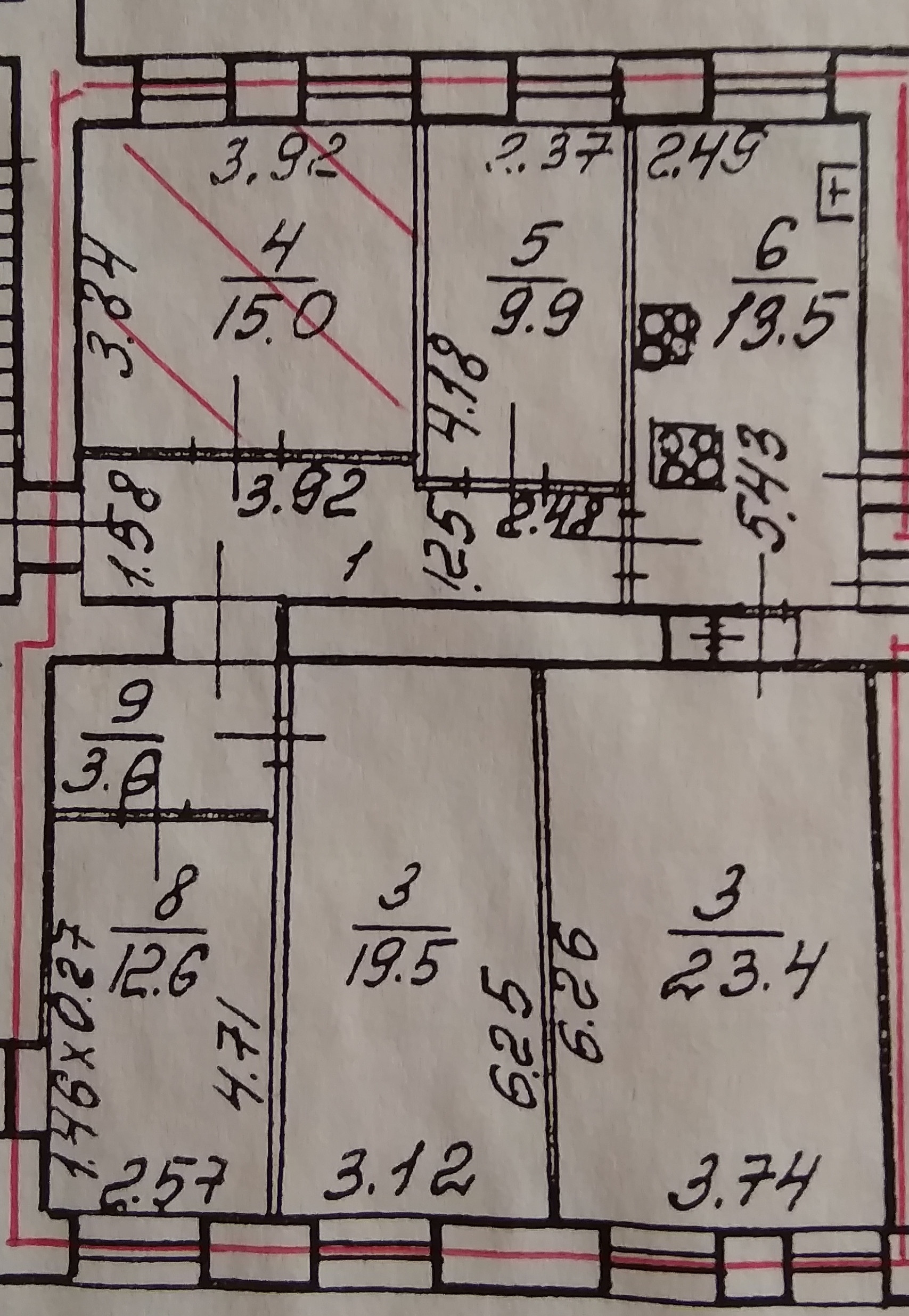 Жилая площадь 23.4 м2