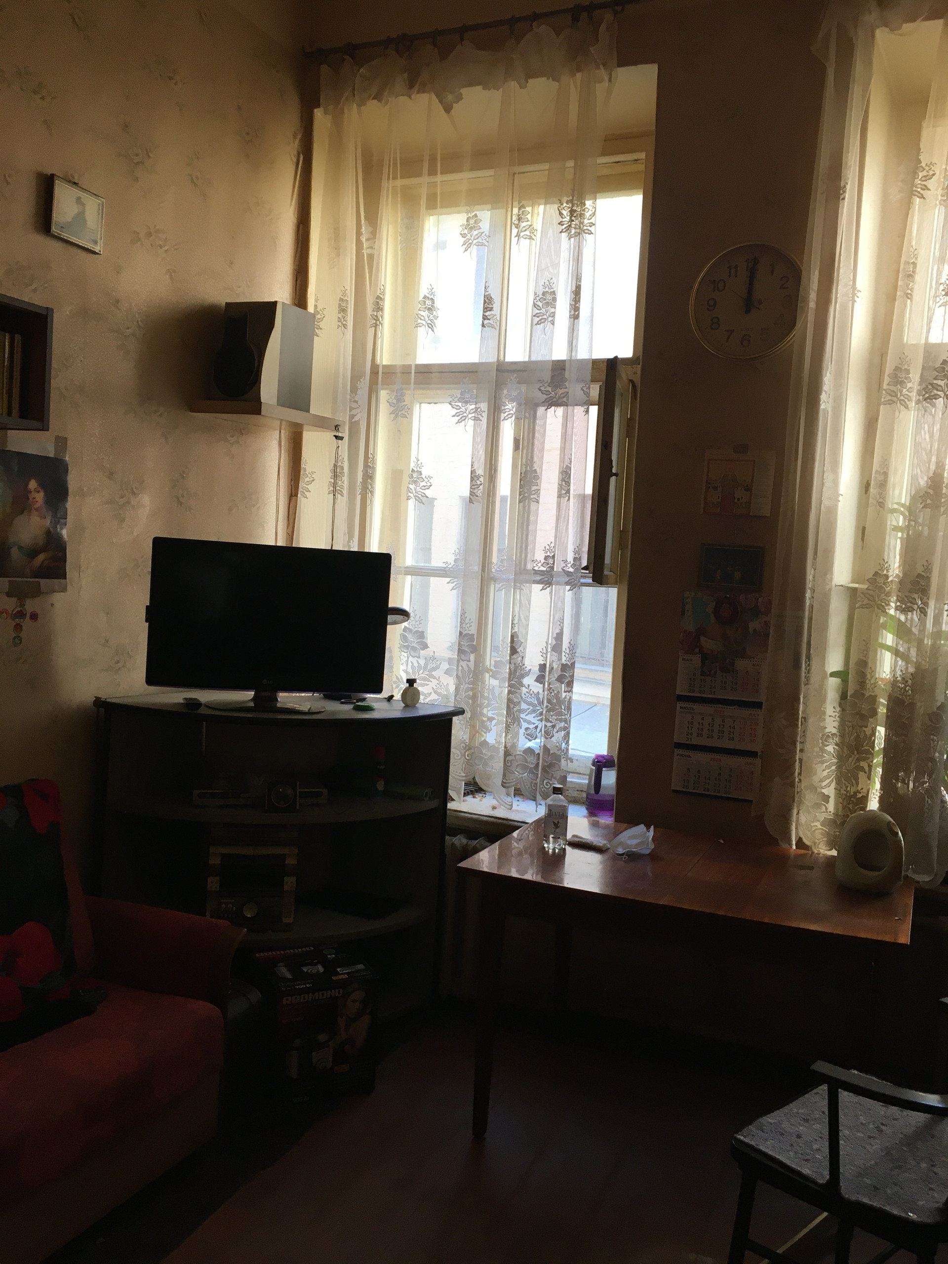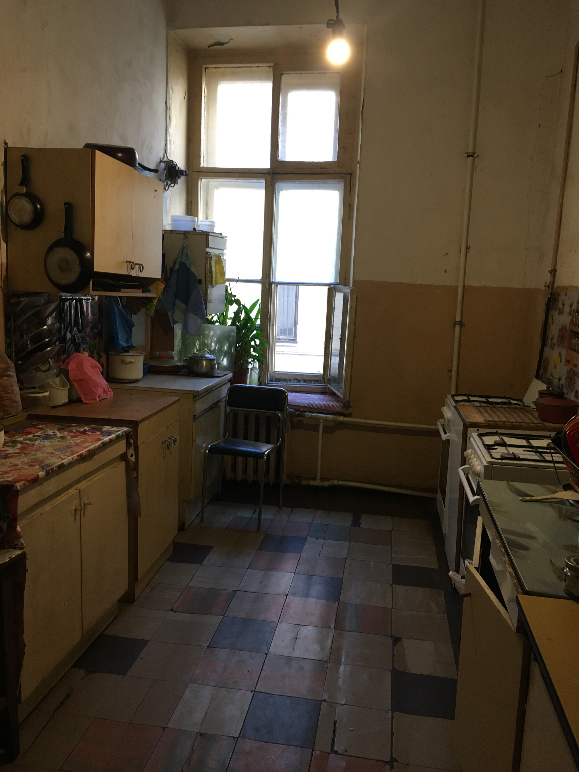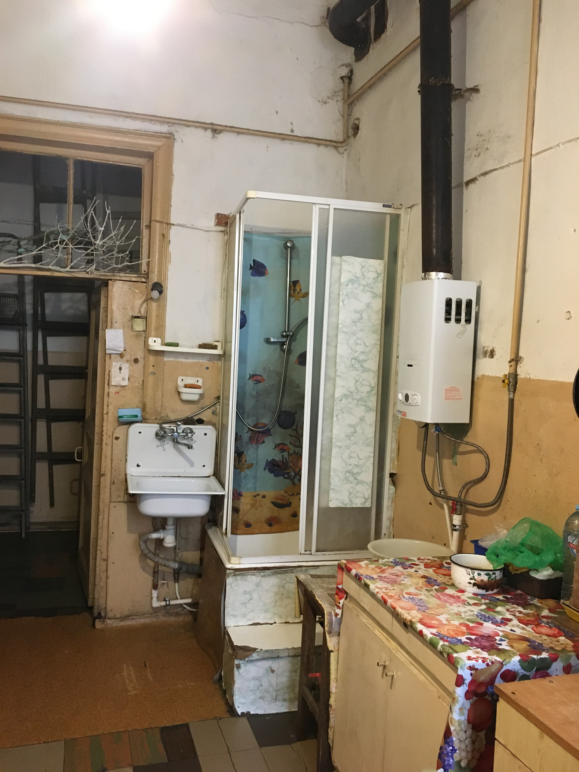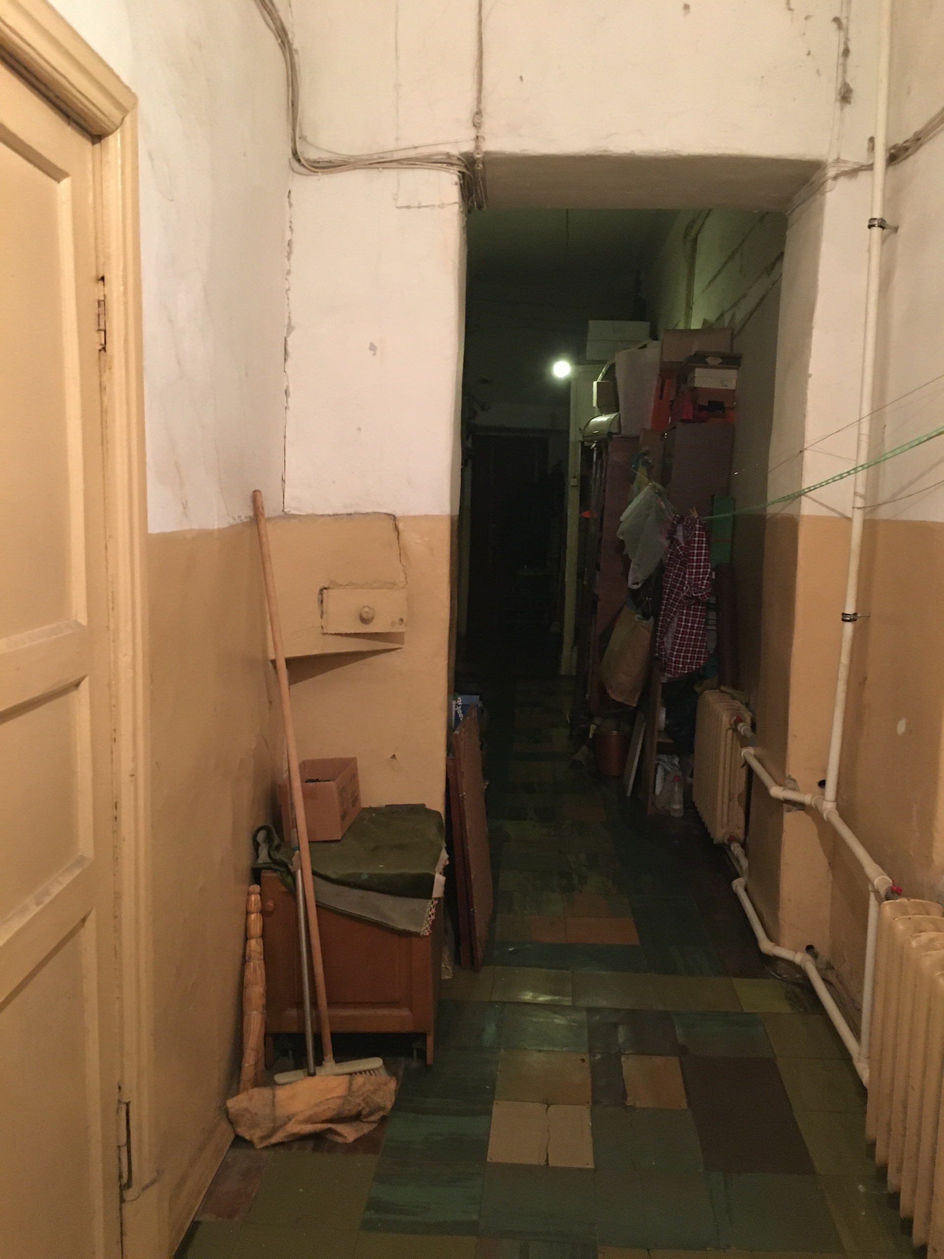 Комната большая 19,6 кВ м, два окна, высота потолков 3,81 м. Железобетоные перекрытия. Комната расположена в конце коридора , перед комнатой есть отдельное помещение , которым пользуется только эта комната , из него можно сделать отдельную кухню и душевую.